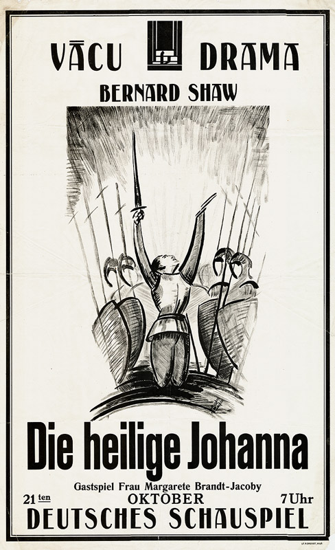 Vācu dra[ā]ma [attēls]. Bernard Shaw Die heilige Johanna. Gastspiel Frau Margarete Brandt-Jacoby