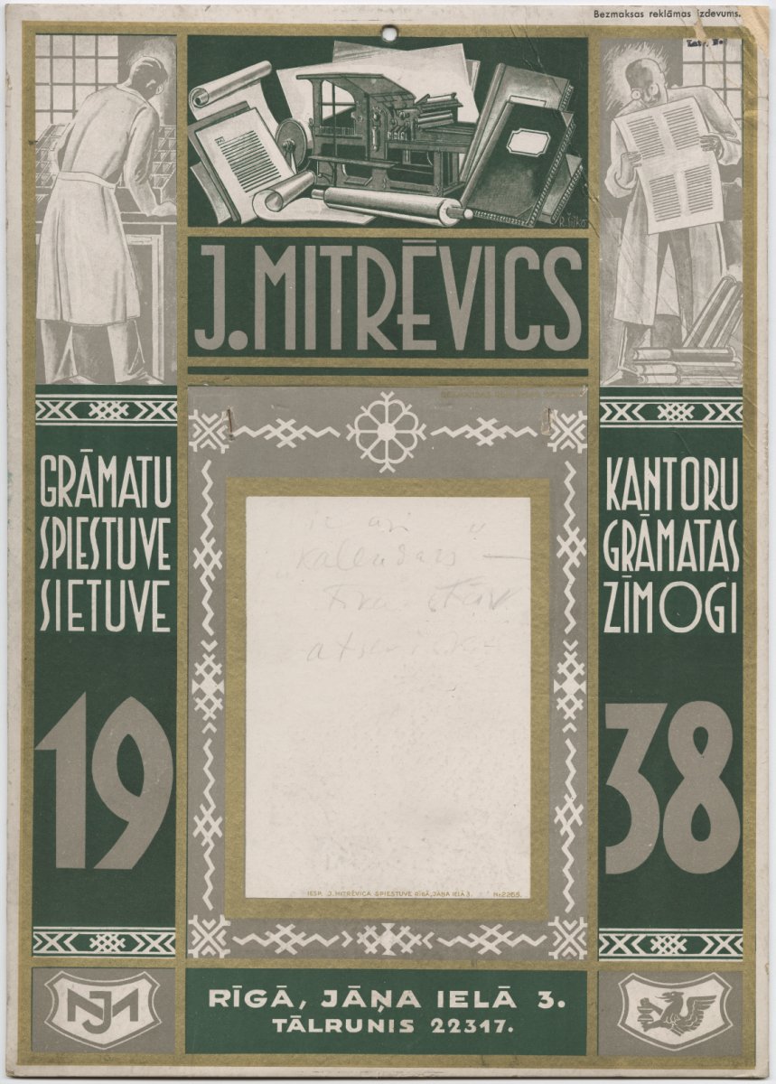 Grāmatu spiestuve[,] sietuve J.Mitrēvics: kantoru grāmatas[,] zīmogi Rīgā, Jāņa ielā 3 [attēls]