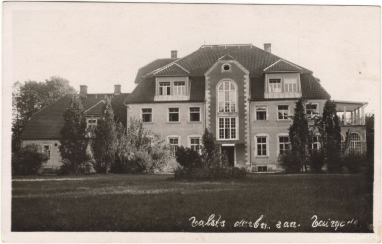 Valsts darbinieku sanatorija (agrāk Vaiņodes muižas pils, līdz 1920. gadam agrārajai reformai baronu fon Grothusu dzimtas īpašums). Ēkas projekta autors - arhitekts M. T. Berči (1912). Tā bija modernisma stilā ieturēta masīva, kubiska ēka ar iespaidīgu stilizētu mansarda jumtu, ko izcēla vertikāli plānotā centrālā ieeja. Šī savdabīgā, savam laikam ļoti modernā savrupmāja gāja bojā Otrā pasaules kara laikā