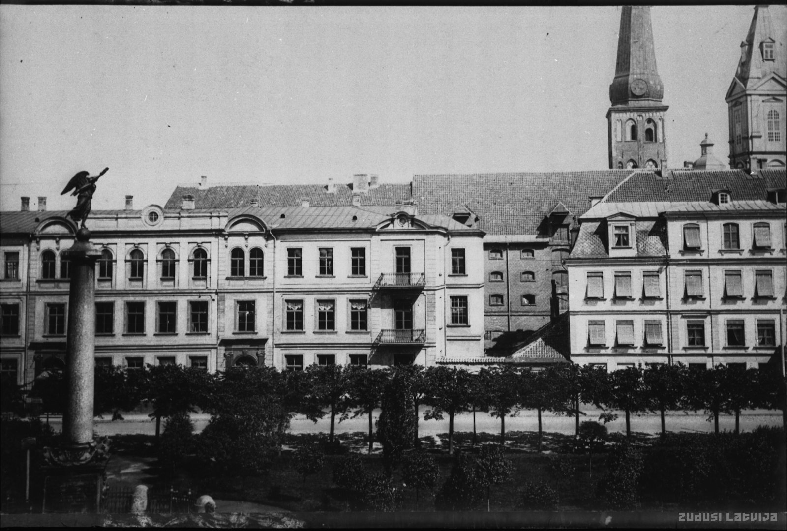 Pils laukums veidots pēc 1783. gada, nojaucot apbūvi. Attēlā arī 1817. gadā atklātā Uzvaras kolonna (arhitekta Dž. Kvarengi (1744-1817) projekts, skulptūru veidojis Stepans Pimenovs (1784-1833)), Ķeizariskā liceja (pēc 1804. gada: guberņas ģimnāzija) ēka (celta no 1785. līdz 1787. gadam pēc arhitekta Matiasa Šonsa (18. gs. 2. p. - pēc 1806) projekta, tagad: Rakstniecības un mūzikas muzejs) un Pēterburgas viesnīcas ēka (celta 1750. g., vairākkārt pārbūvēta)