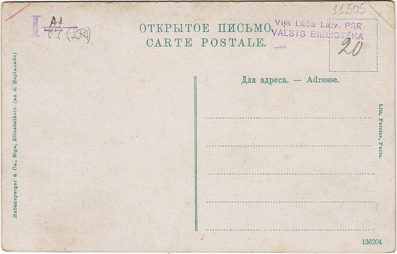 Рига. Памятникъ Петра I [attēls] = Peterdenkmal
