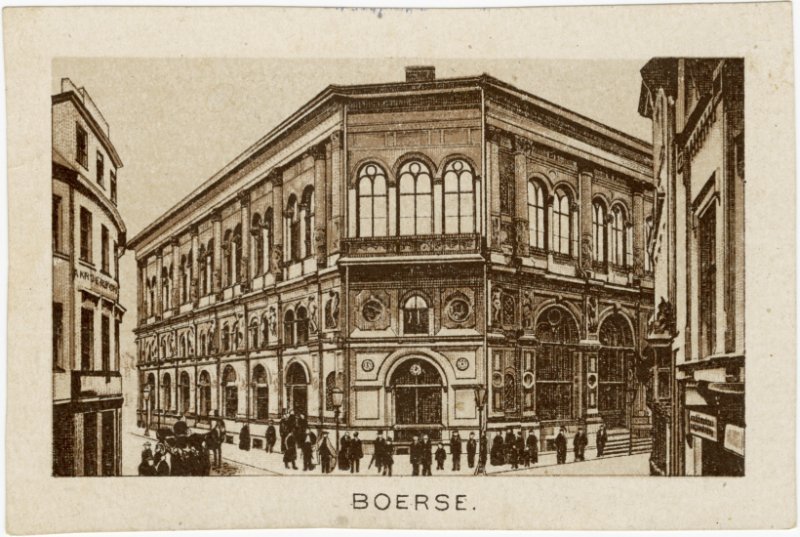 Biržas nams, celts 1852.-55.g. arhitekta Geses vadībā, pēc akadēmiķa G. fon Bosses plāna. Ēka celta izteiksmīgā renesanses stilā. Apakšstāvā izvietota lielā biržas zāle un biržas komitejas kabinets, augšstāvā biržas komitejas konferenču telpa, liela baļļu zāle, balkonistaba, ēdnīca. Ēka izcila, gan arhitektūras, gan plānojuma ziņā. Skats no Šķūņu ielas gala. Pa kreisi - Pils iela, pa labi - Jēkaba iela.