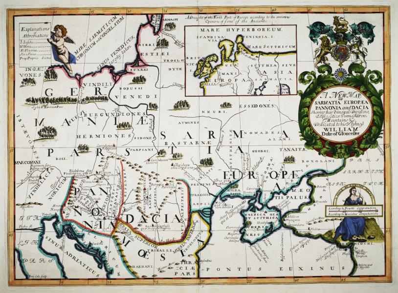A New Map of Sarmatia Europaea, Pannonia and Dacia shewing their principal divisions, people, cities, towns, rivers, mountains &c. Dedicated to his Highness William Duke of Gloucester