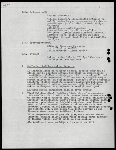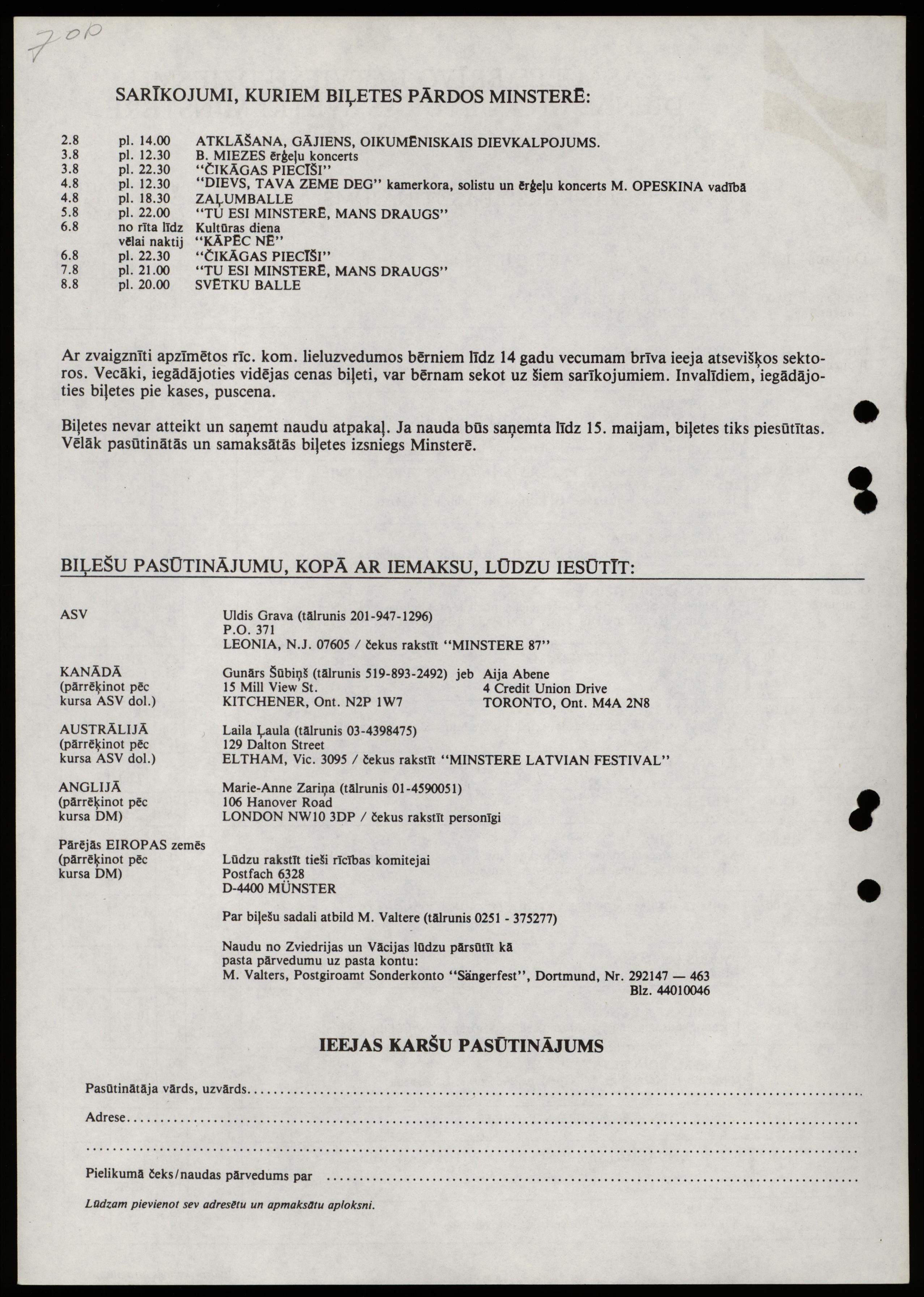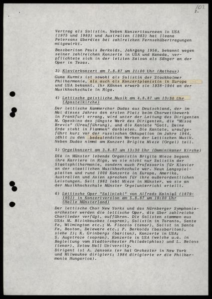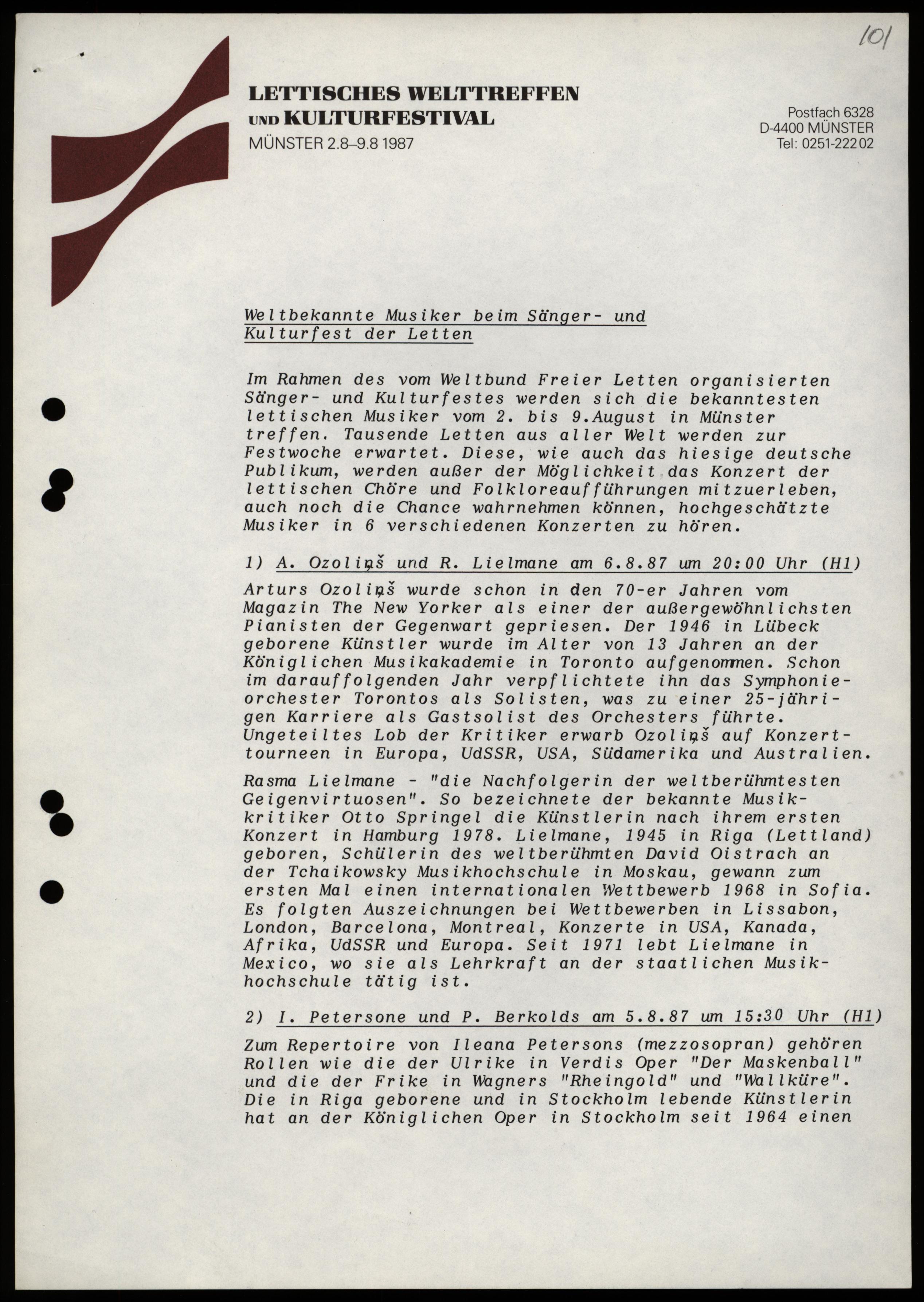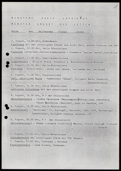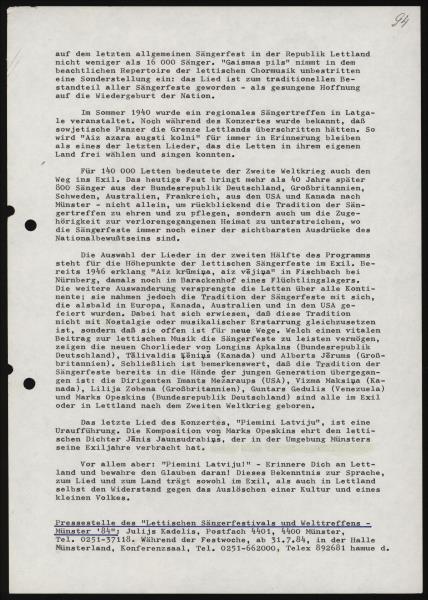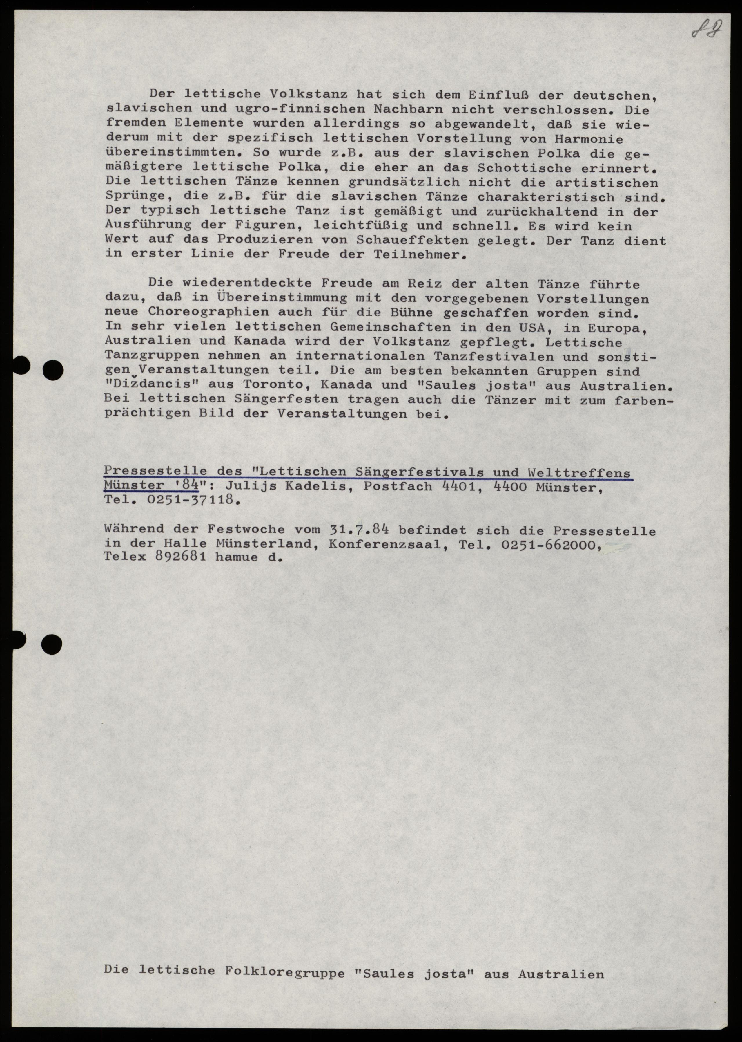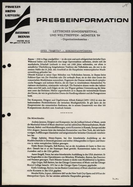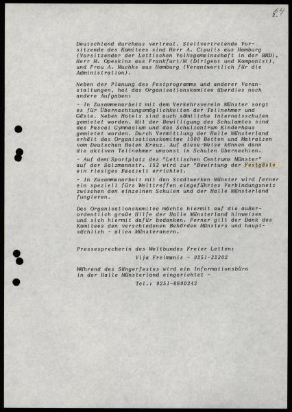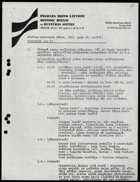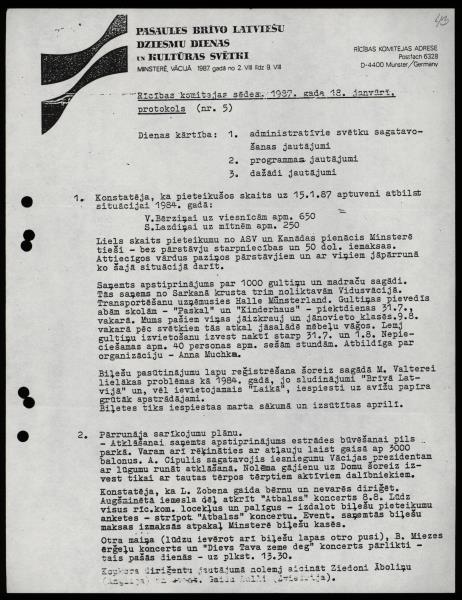 PBLA Dziesmu dienas Minsterē 1987. g.: Dziesmu dienu rīcības komitejas sēžu protokoli, preses adreses, ielūgumi, sarakste, laikrakstu izgriezumi u.c.