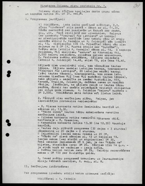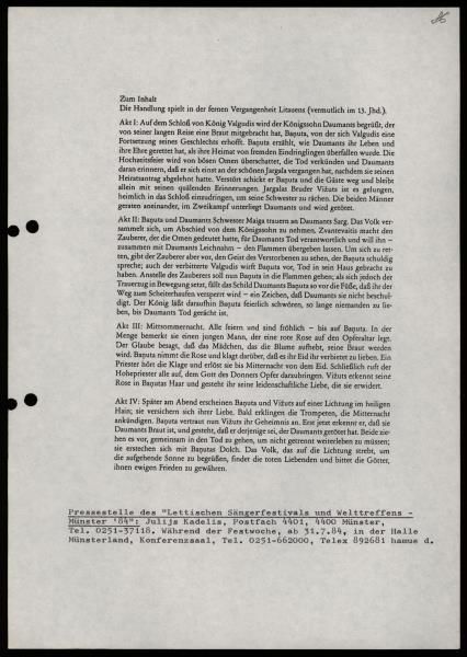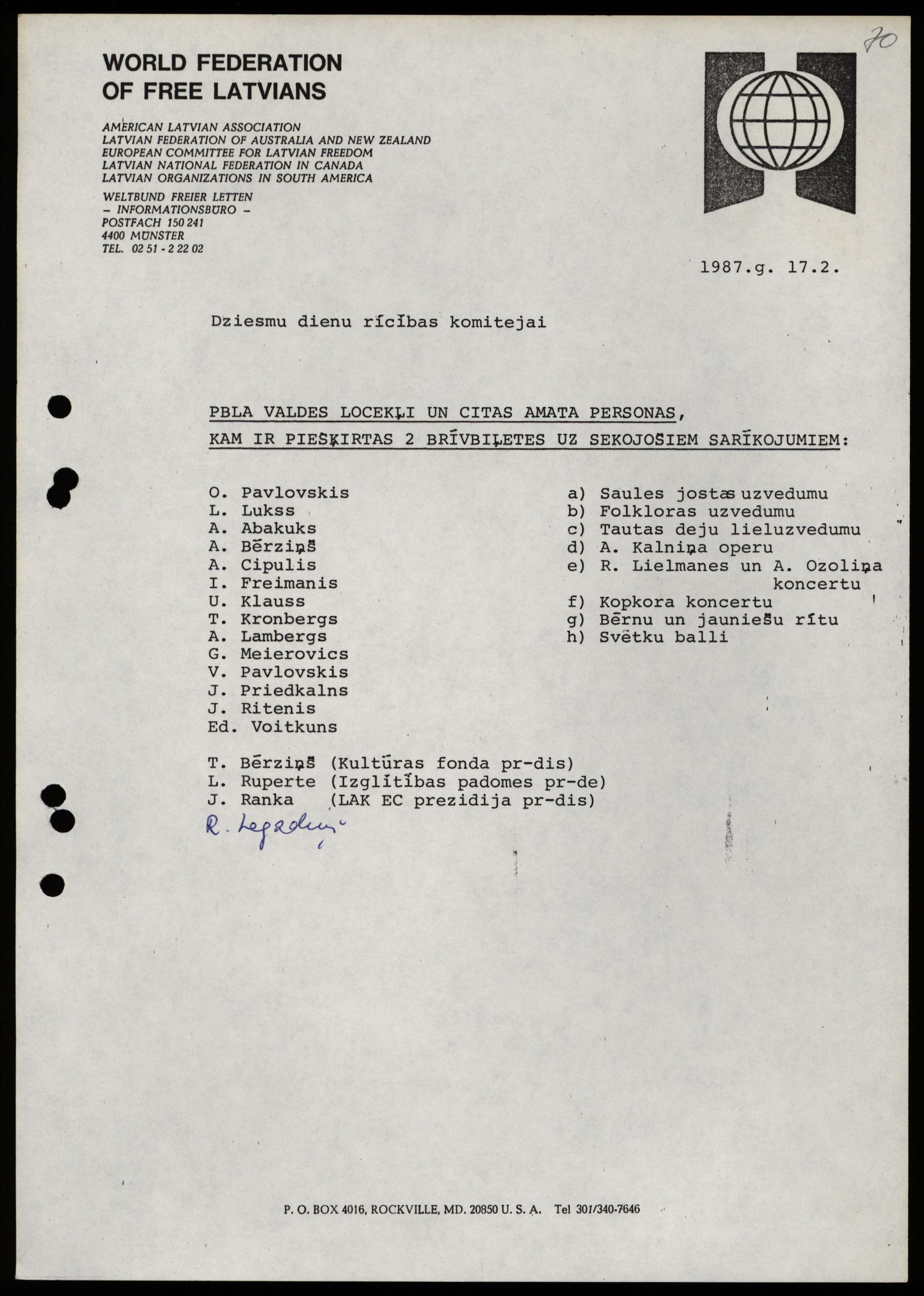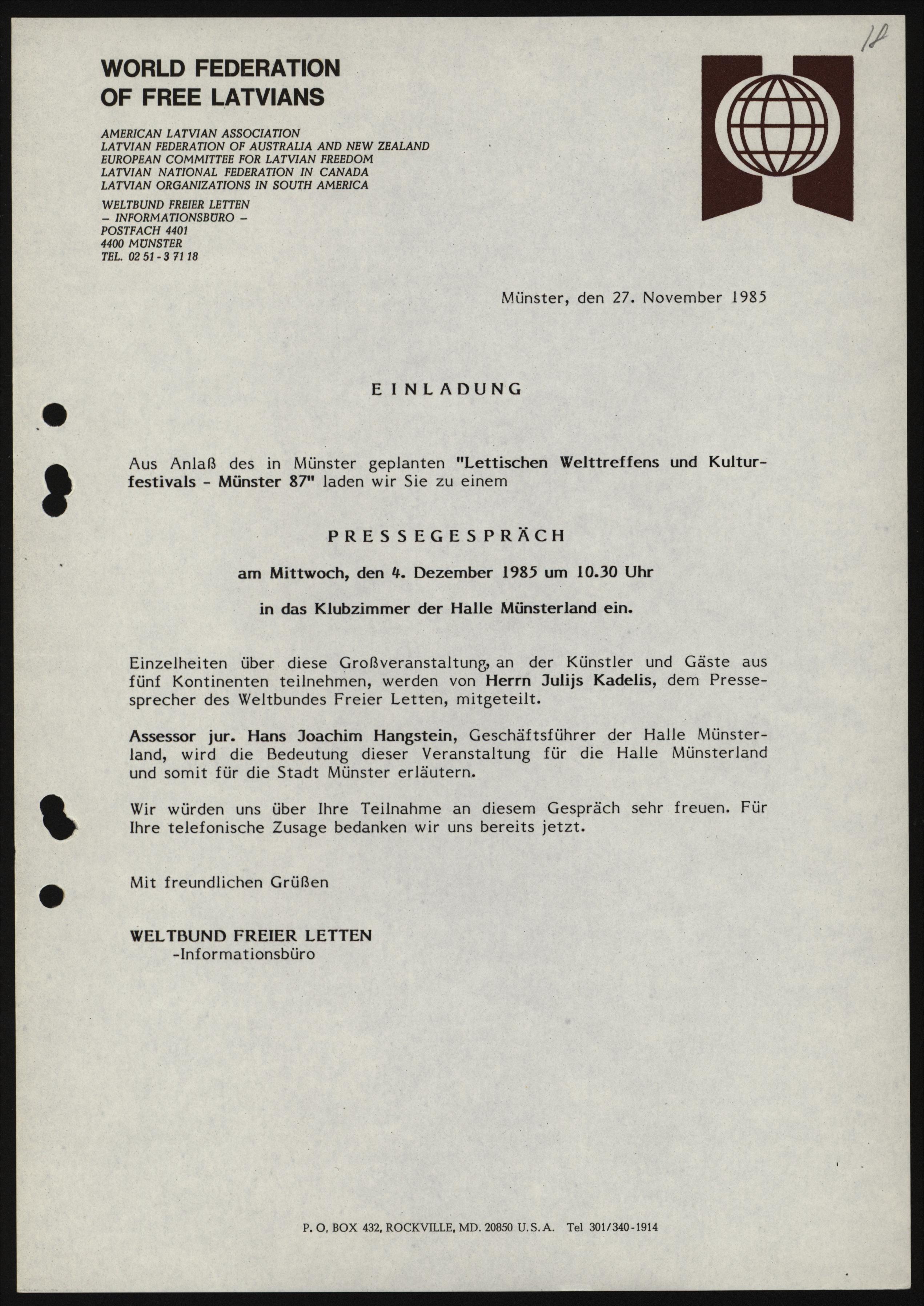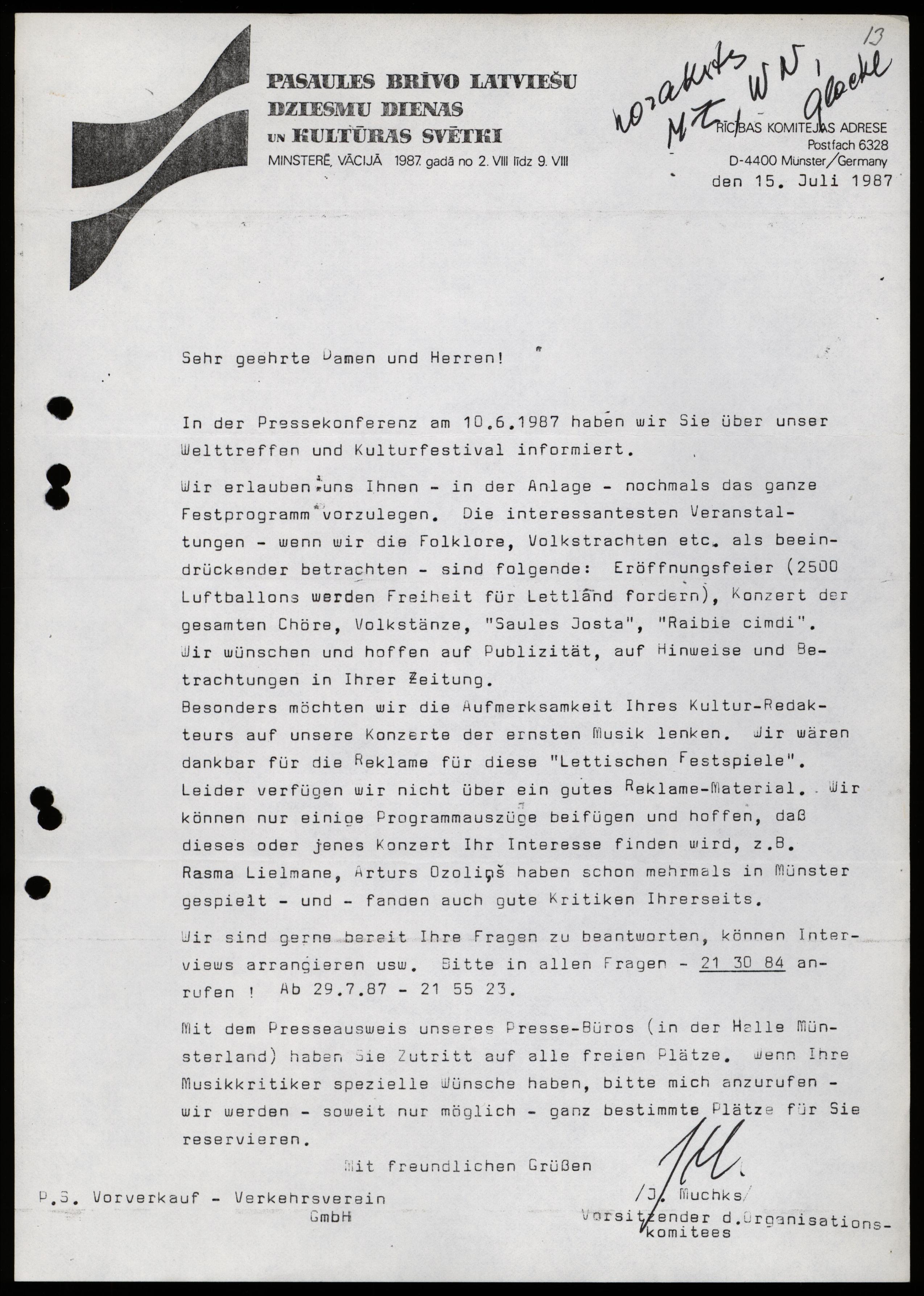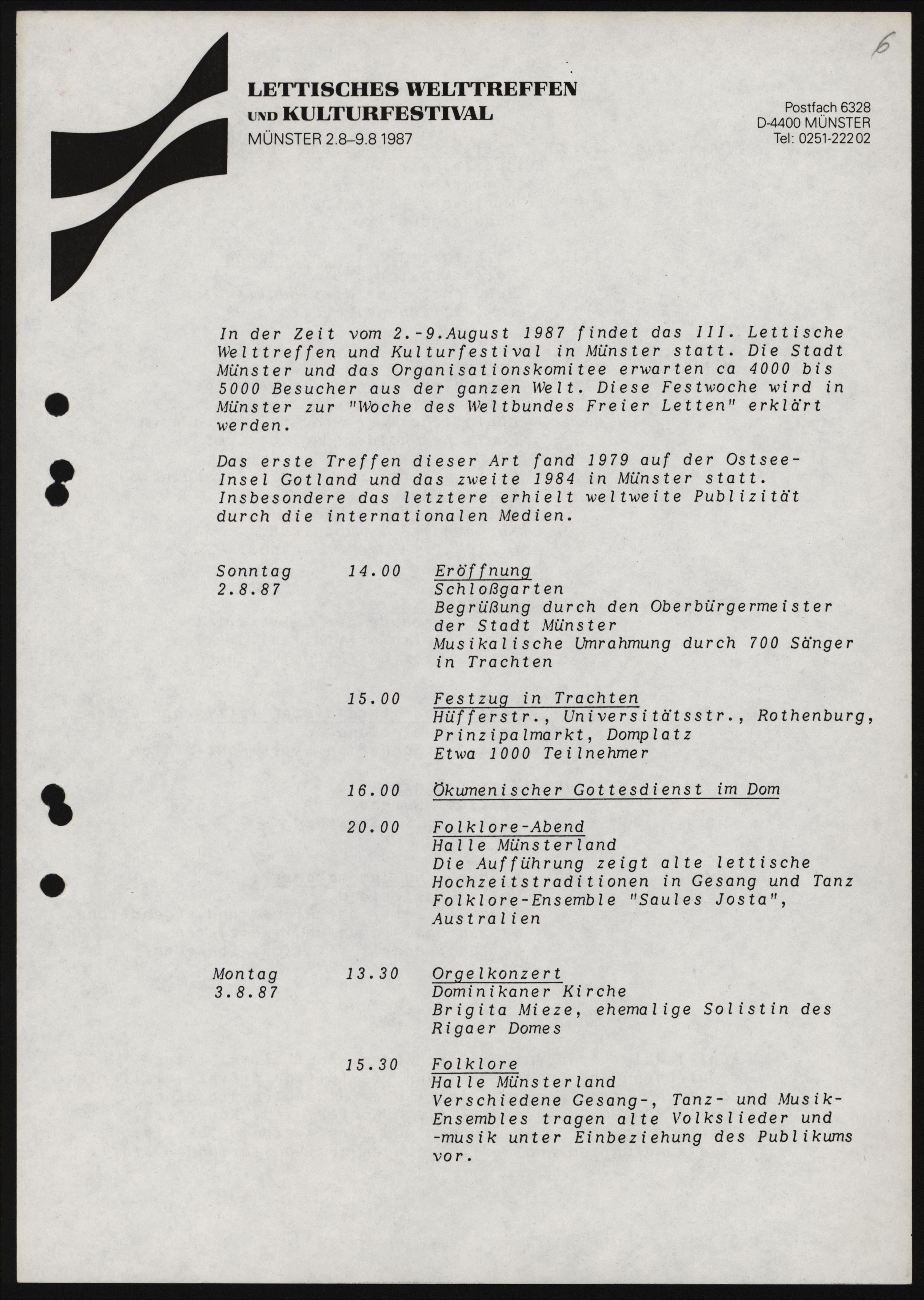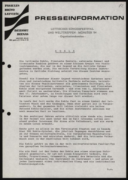 PBLA Dziesmu dienas Minsterē 1987. g.: Dziesmu dienu rīcības komitejas sēžu protokoli, preses adreses, ielūgumi, sarakste, laikrakstu izgriezumi u.c.