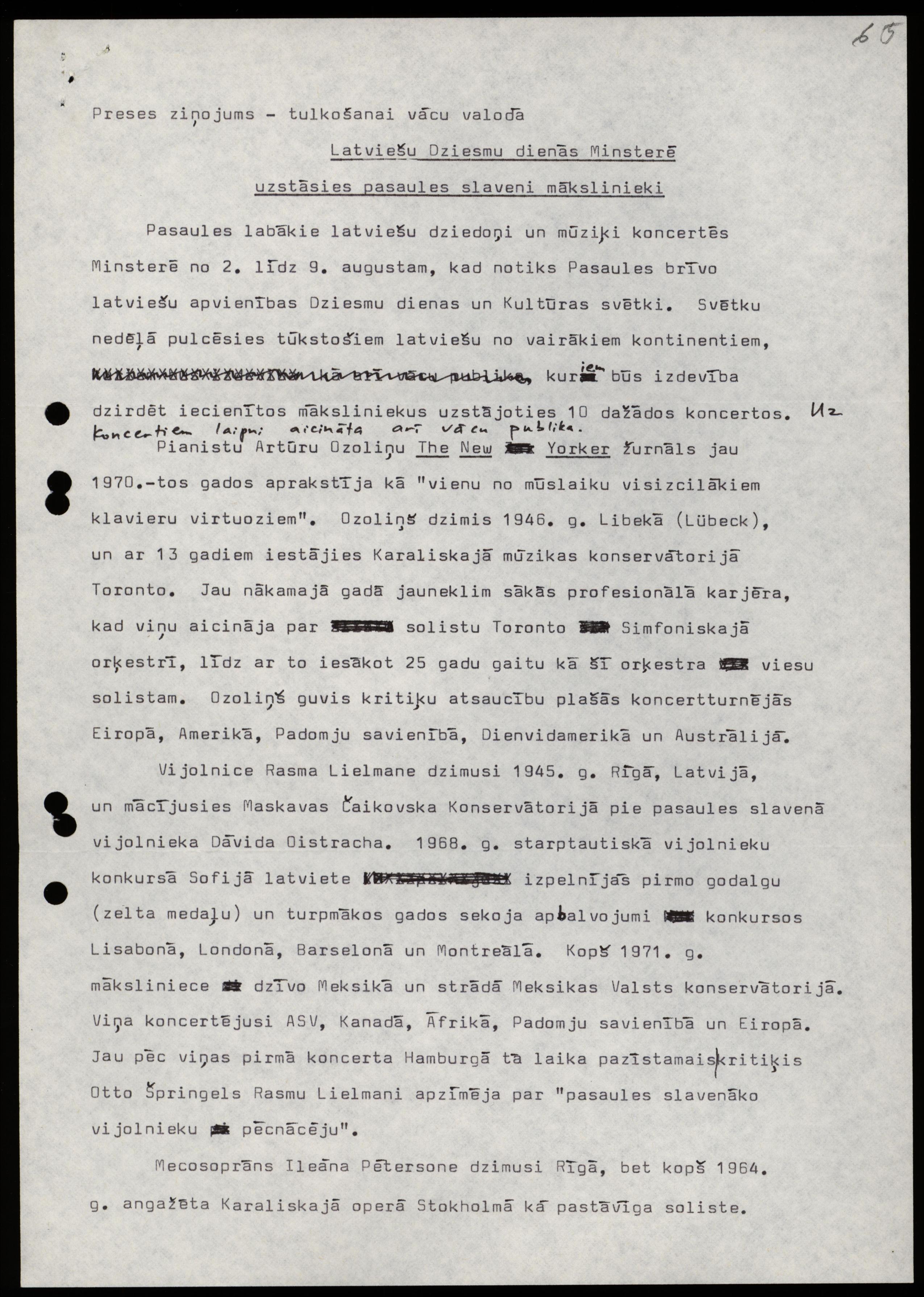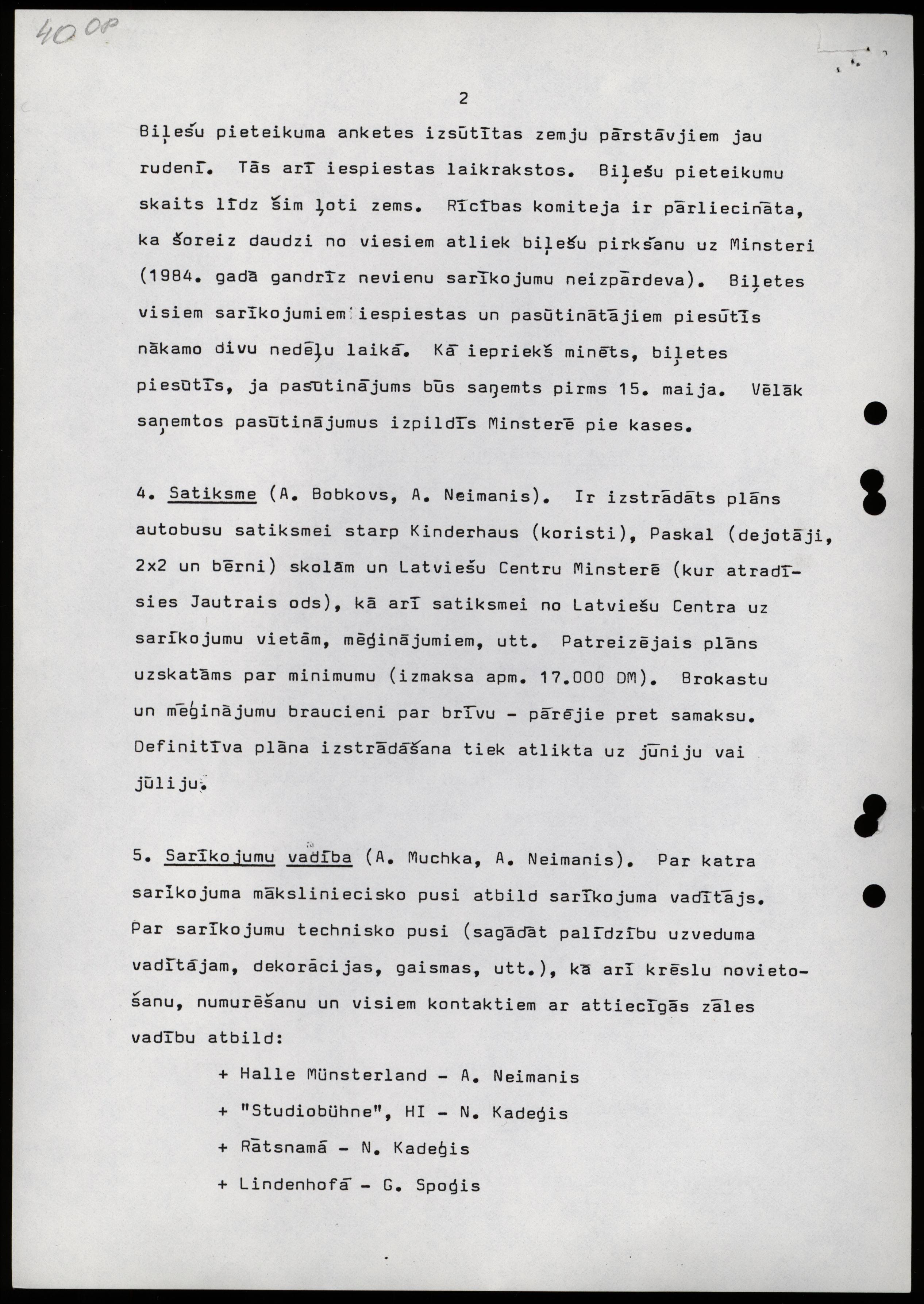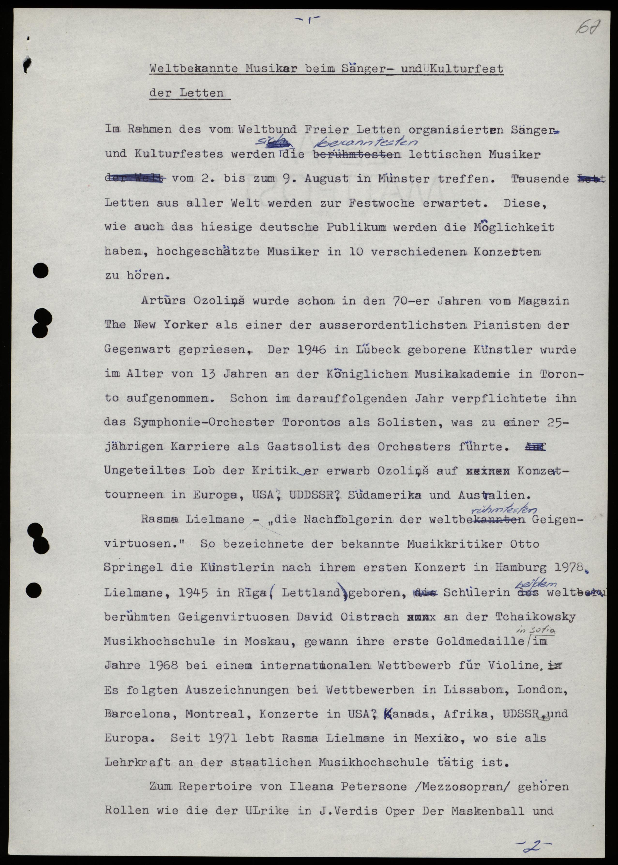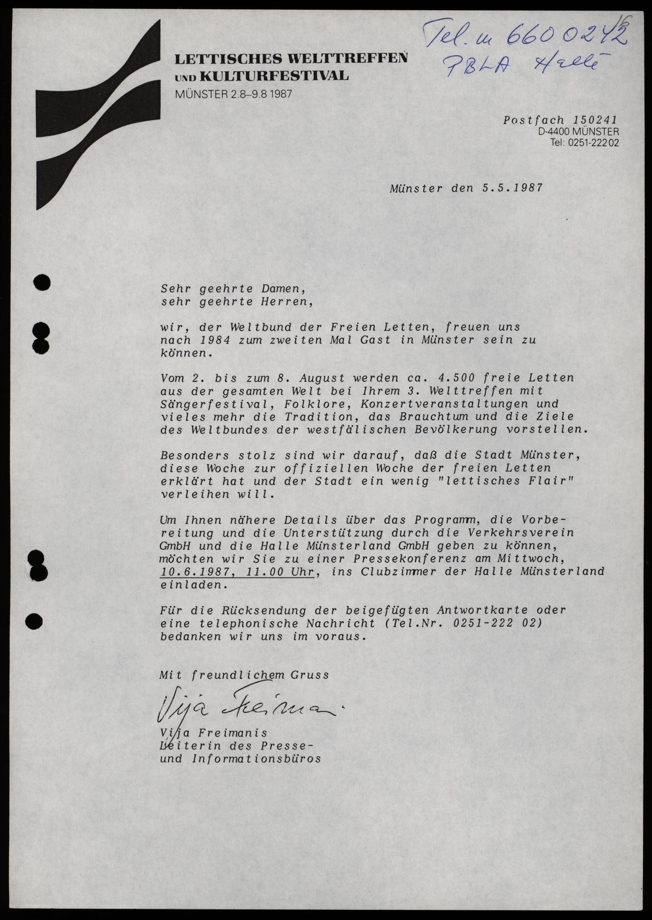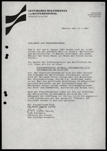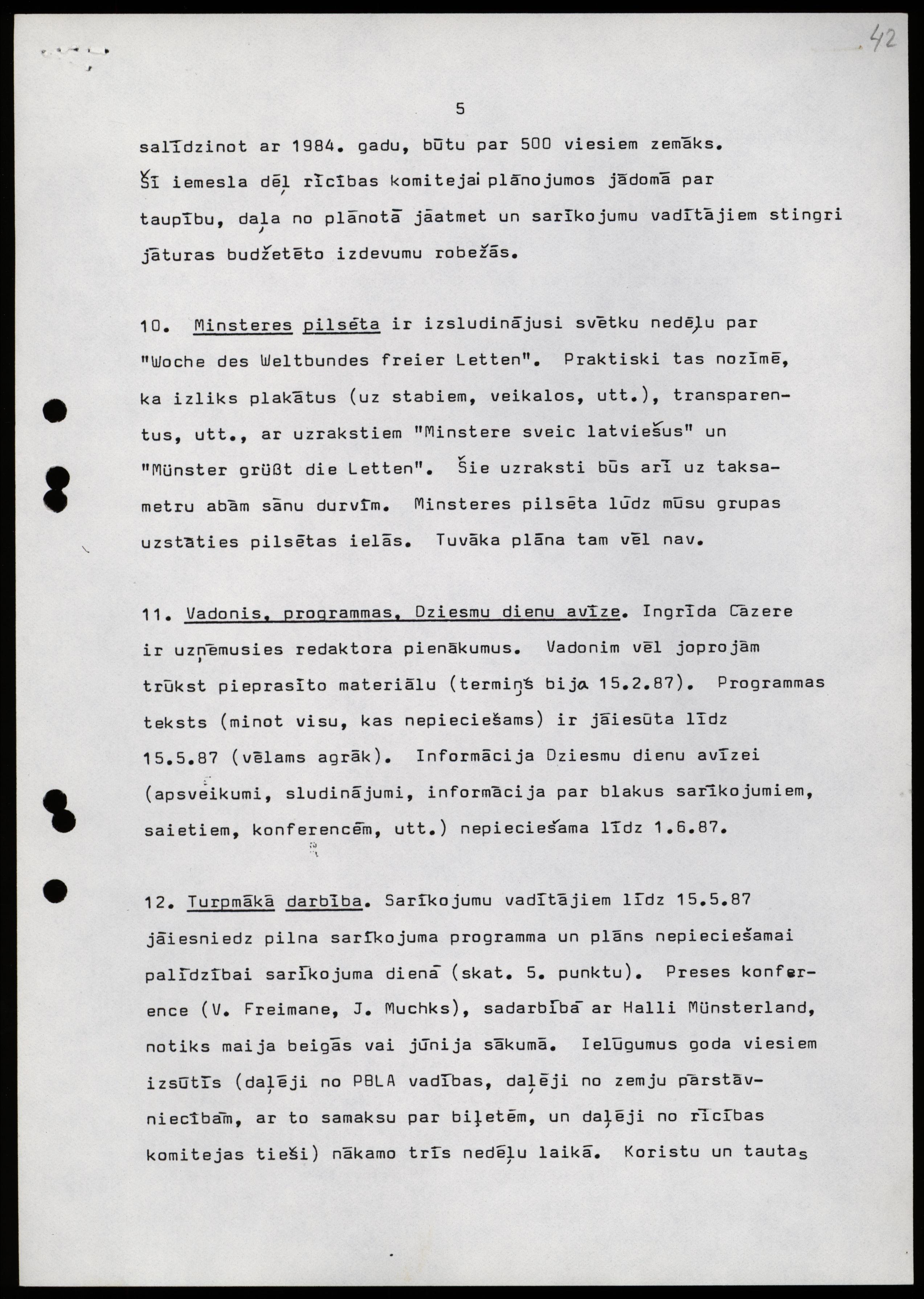 PBLA Dziesmu dienas Minsterē 1987. g.: Dziesmu dienu rīcības komitejas sēžu protokoli, preses adreses, ielūgumi, sarakste, laikrakstu izgriezumi u.c.