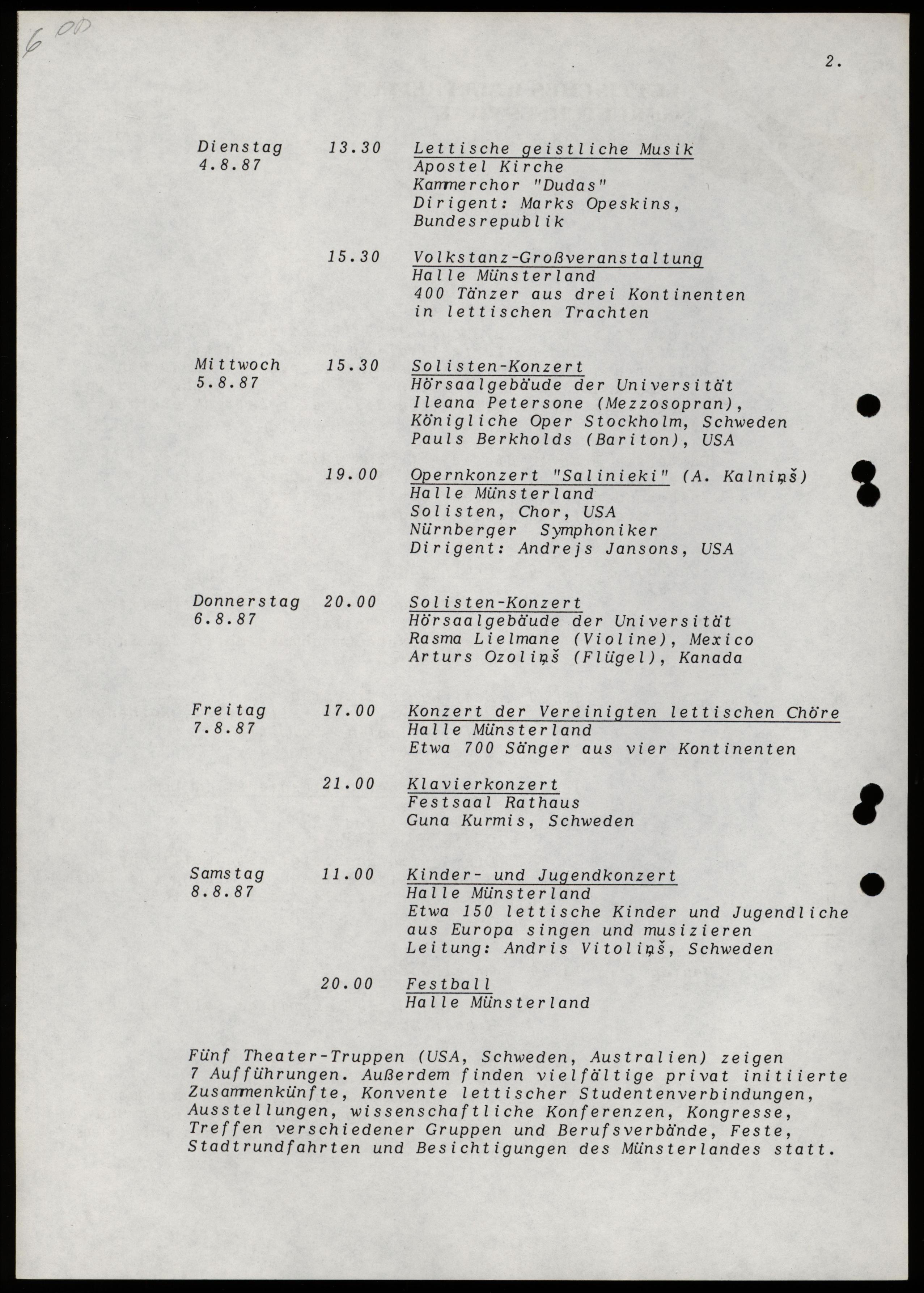 3. Pasaules brīvo latviešu dziesmu dienas Eiropā (1987 : Minstere, Vācija) - Nav autora (Notikums)