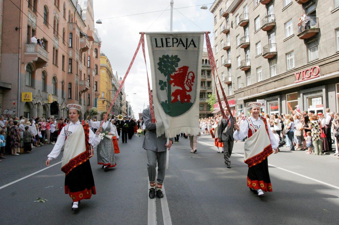 XXIV Vispārējo latviešu dziesmu un XIV deju svētku gājiens. Dalībnieki no Liepājas