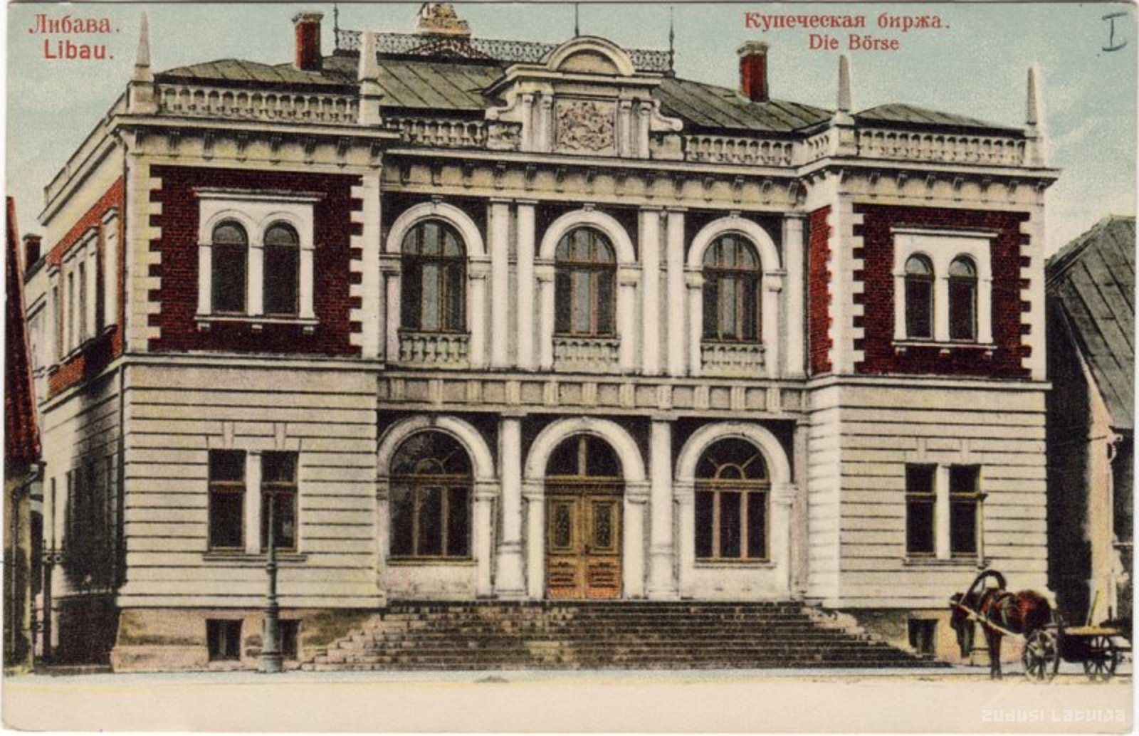 Liepājas biržas biedrība tika nodibināta 1881.gadā. Biržas ēka ir vēl viens no arhitekta Paula Makša Berči (Bertchy) radītajiem objektiem Liepājā. Celta no 1885. līdz 1887.gadam. 1890.gadā tās klientus jau apkalpoja 40 aģentūru, 20 komisiju kantori, 4 mākleru un notāru kantori, 9 eksporta ekspedīcijas, veicot kravu tranzīta operācijas caur Liepājas ostu un pa Liepājas - Romnu dzelzceļu. Biržas nams bija viena no respektablākajām celtnēm gan ekonomiskās, gan sabiedriskās nozīmības ziņā. 1926.gadā Liepājas birža ieguva jaunus statūtus, kuros noteikts, ka Biržas komiteja ir oficiāla likumā paredzēta iestāde tirdzniecības interešu aizstāvībai. Par biržas sabiedrības biedriem varēja kļūt tirdzniecības un kuģniecības uzņēmumi, kredītiestādes, apdrošināšanas biedrības, kooperatīvās sabiedrības un ekspedīciju kantori, kuri izpirkuši 1., 2. vai 3.kategorijas tirdzniecības zīmes.