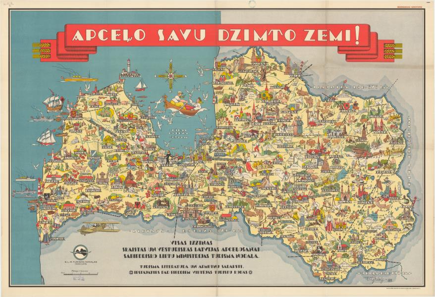Latvijas kartē ilustratīvi attēlotas ievērojamākās vietas un apskates objekti