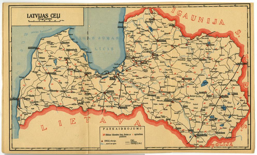 Latvijas kartē uzrādītas Shell degvielas uzpildes stacijas, ceļi, ezeri un upes