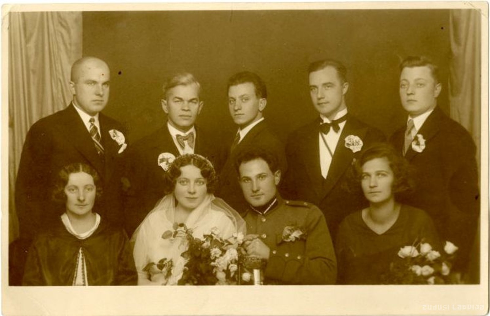 Stāv pirmais no labās Vitauts Milkevičs, trešais Mečeslavs Milkevičs. Blakus līgavai Jūlijai tēva māsa Sofija