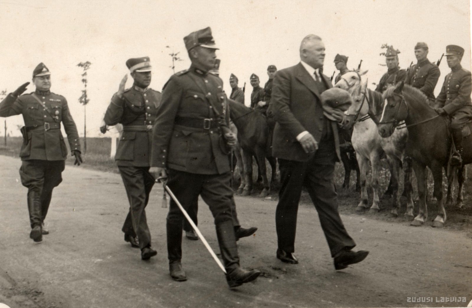 Sigulda. Latvijas Ministru prezidents Kārlis Ulmanis pieņem Latvijas aizsargu parādi