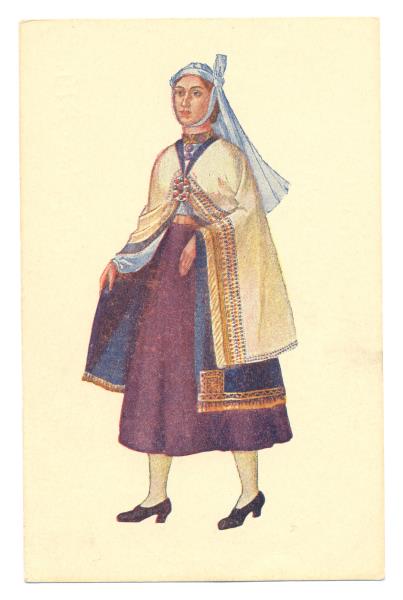 Apģērbu paraugs. Zīmējis Ansis Cīrulis. Tāmnieki (Kuldīgas apvidus) Svētku komitejas izdevums.