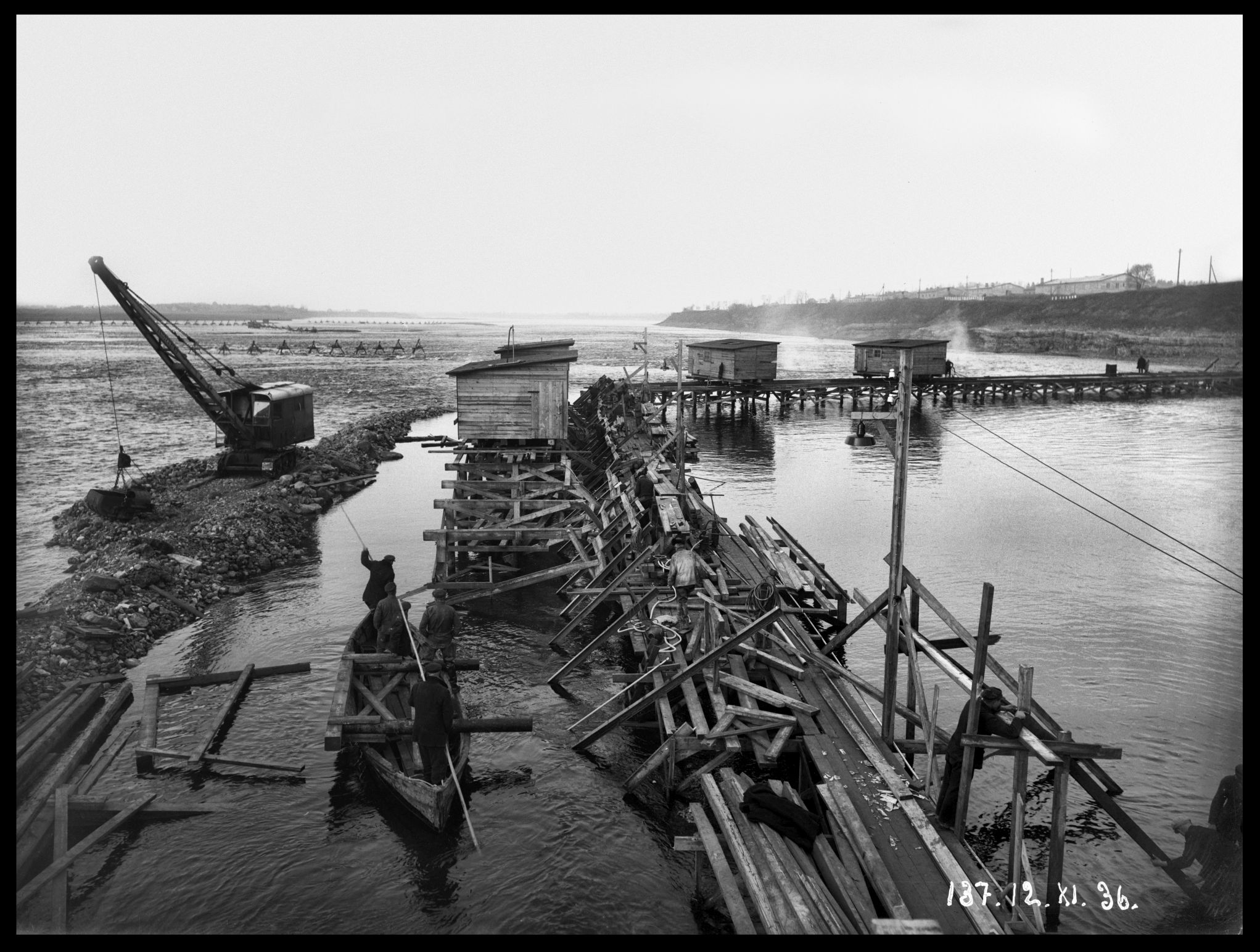Строительство временной защитной дамбы на правом берегу Даугавы. 12 ноября 1936 года.