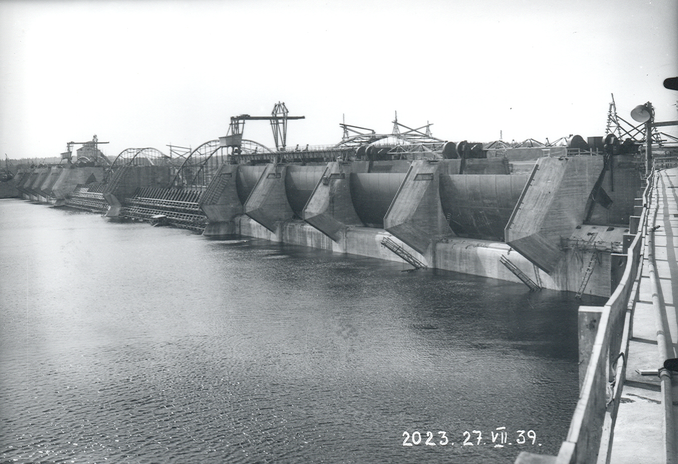 Плотина Кегумской электростанции и затворы на стороне водохранилища. 27 июля 1939 года