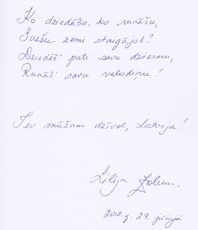 Lilijas Zobens vēlējums Dziesmu un deju svētkiem