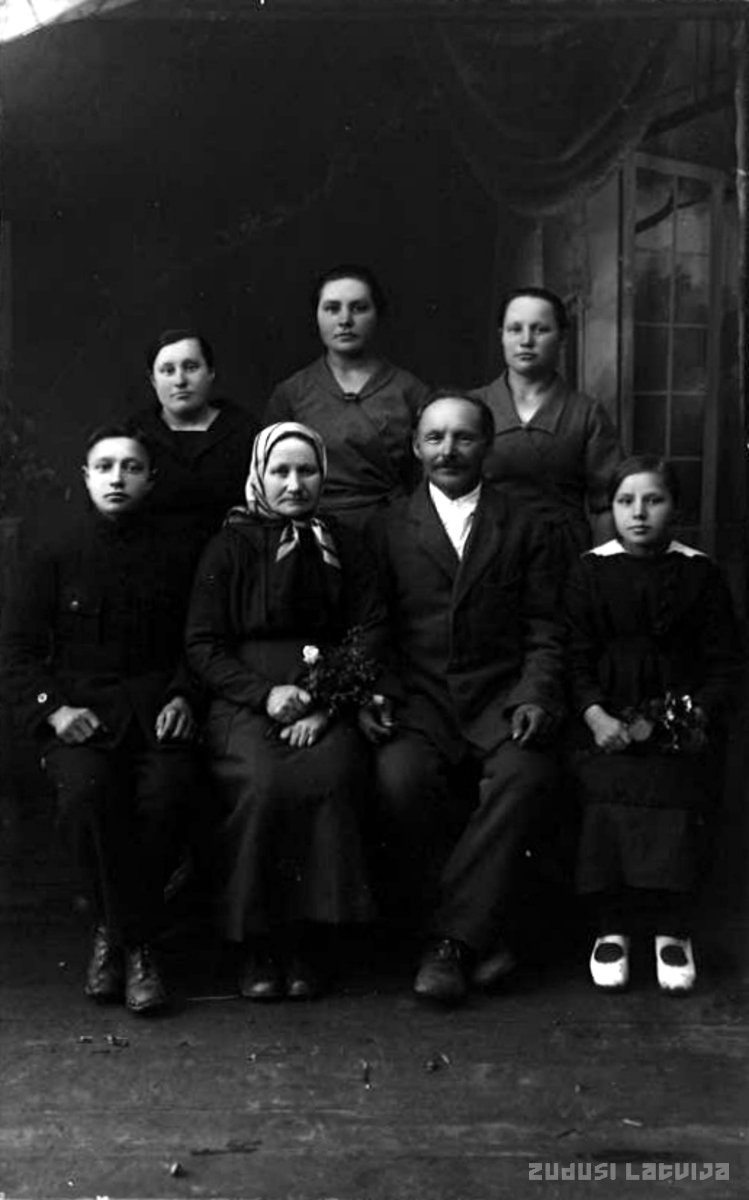 Puriņu ģimene J.Bojāra studijā Palsmanē. Pirmajā rindā vidū vecāki - Anna un Jēkabs Puriņi. Otrajā rindā kreisajā pusē Elīna Puriņa, labajā Elza Puriņa