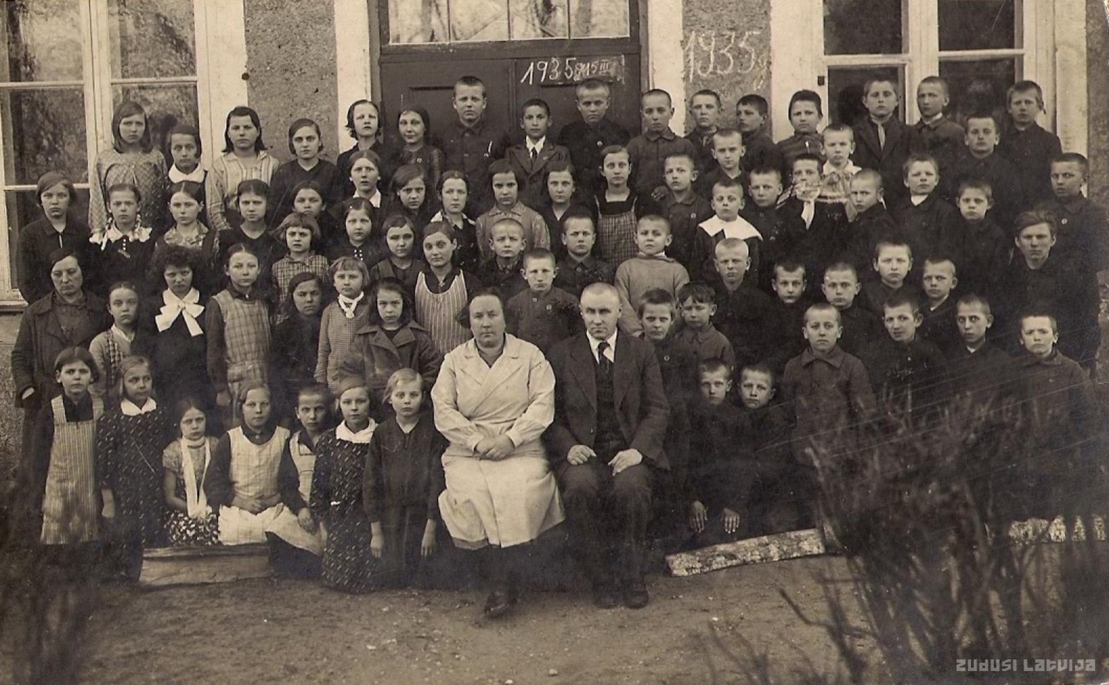 Rozēnu skolas audzēkņi, vidūs sēž skolotājs Ramanis