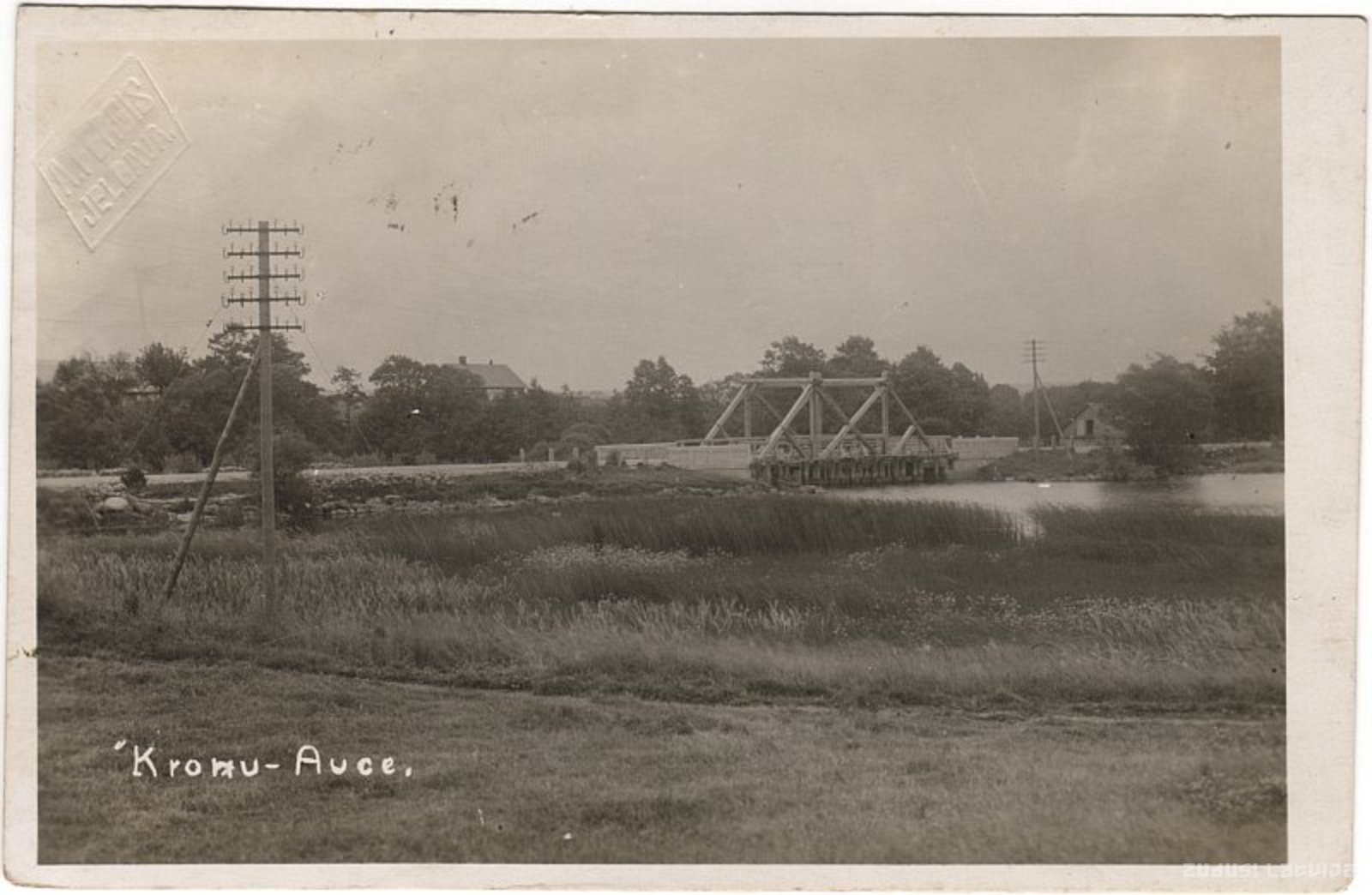 Skats uz Kroņauci pie tilta pār Auces upi 20.gadsimta 20.gadu beigās. Tilts tika celts 1925.gadā par pagasta līdzekļiem. Mūsdienās šajā vietā pār Auces upi arī ir tilts, taču tas ir celts 20.gadsimta 70.gados. Otrpus tiltam redzamajā attēlā atradušās ūdensdzirnavas, mūsdienās tur atrodas AS "Agrofirma Tērvete" alusdarītava.