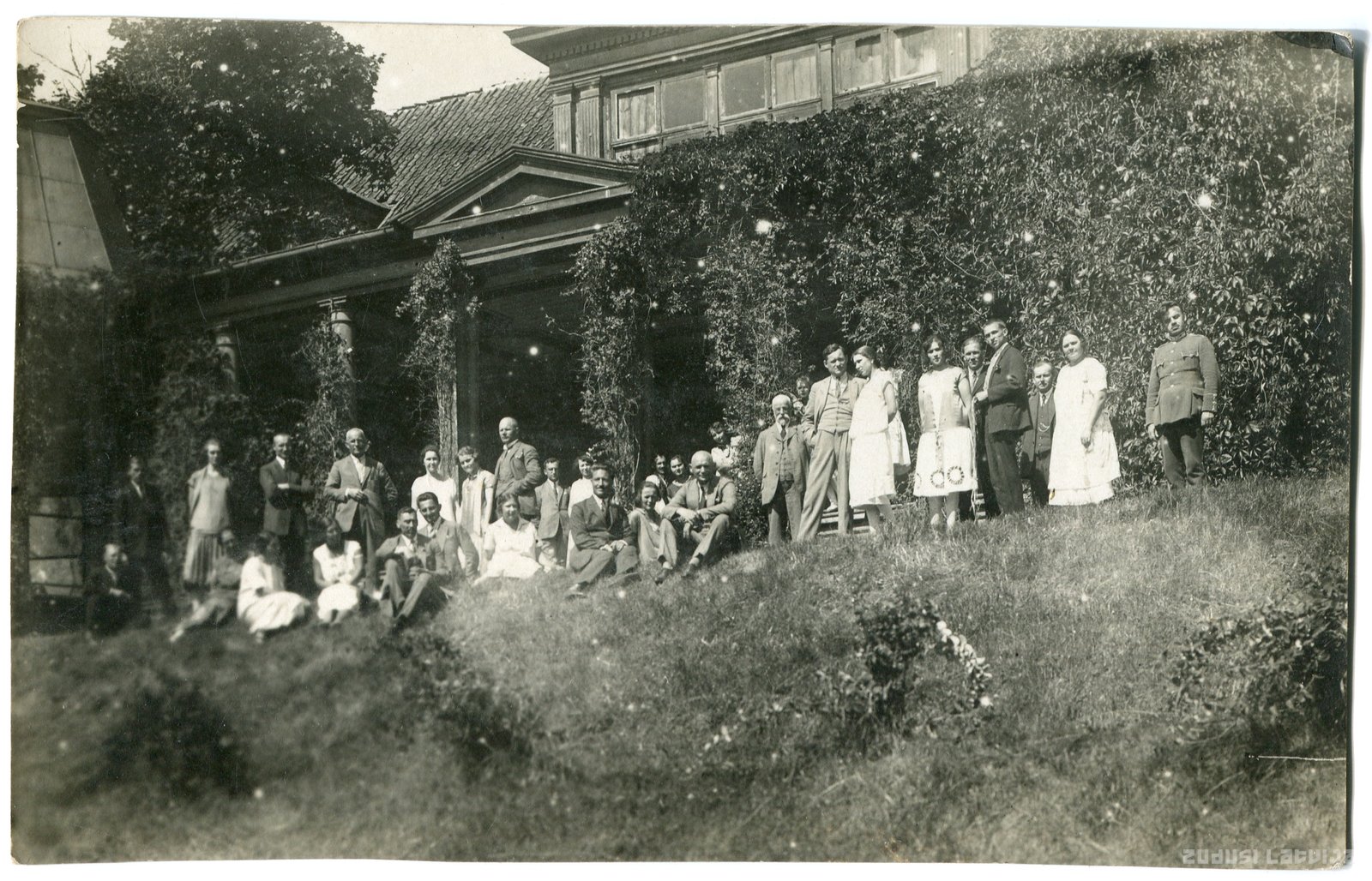 Pie Burtnieku muižas terases pirmā stāvošā sieviete no kreisās puses ir Milda Lūkins (vēlāk Prauliņa). Jāņa Prauliņa vecmamma, bijusi Burtnieku aizsardžu priekšniece