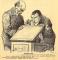 Karikatūras paraksts: "Pārbūvētā Saeimas sēžu zālē katram Saeimas loceklim paredzēta pulte ar vāku.