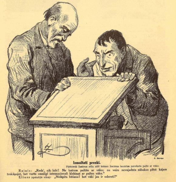 Rainis: "Redz, cik labi! Nu katram pultīte ar vāku; nu vairs nevajadzēs zābakus plēst kājām trokšņojot, bet varēs omulīgi internacionāli klabināt ar pultes vāku."