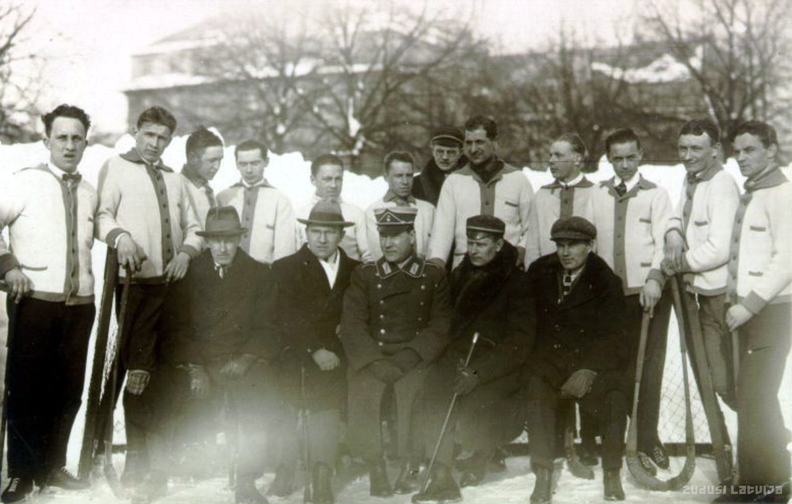 "R.F.K. - R.A.K.", 8:1, Esplanāde. Otrais no kreisās sēž Nikolajs Sokolovs, pirmais no kreisās stāv Pauls Sokolovs. Fotogrāfija no Augusta Sokolova arhīva