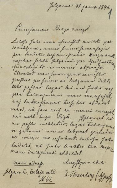 Elzas Rozenbergas vēstule Arvedam Bergam