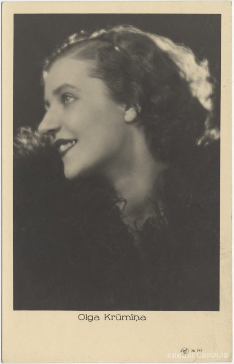 Aktrises Olgas Krūmiņas (precējusies Mitrevica, 1909-1992) portrets. Beigusi E. Feldmaņa teātra kursus. Dailes teātra aktrise (1931-1943), piedalījusies dziesmuspēlēs. Vienu sezonu strādājusi Tautas teātrī, no 1944. gada Drāmas (bijušā Nacionālā) teātra aktrise. Ieguvusi LPSR Nopelniem bagātās skatuves māklsinieces (1954) goda nosaukumu. Skatuves gaitas beigusi 1961. gadā. (Teātris un Kino. Biogrāfijas. 2. sējums, 2002: 154-156 lpp.)