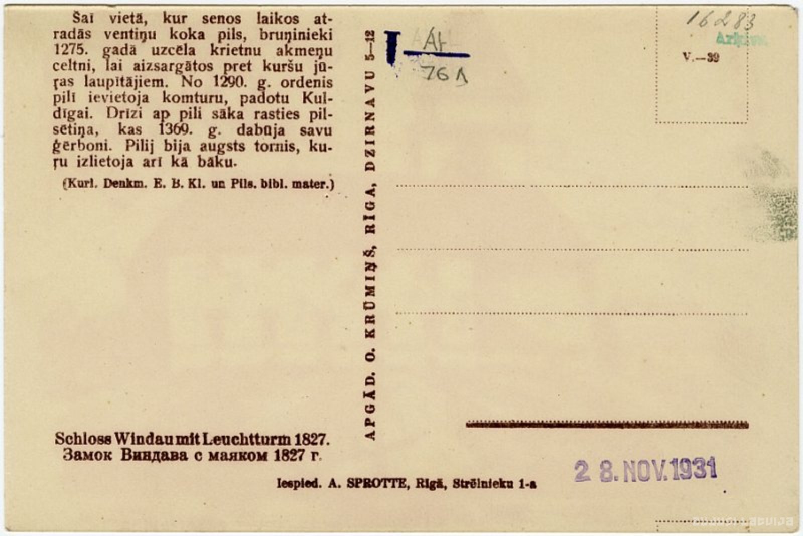 Ventspils. 1827. gads