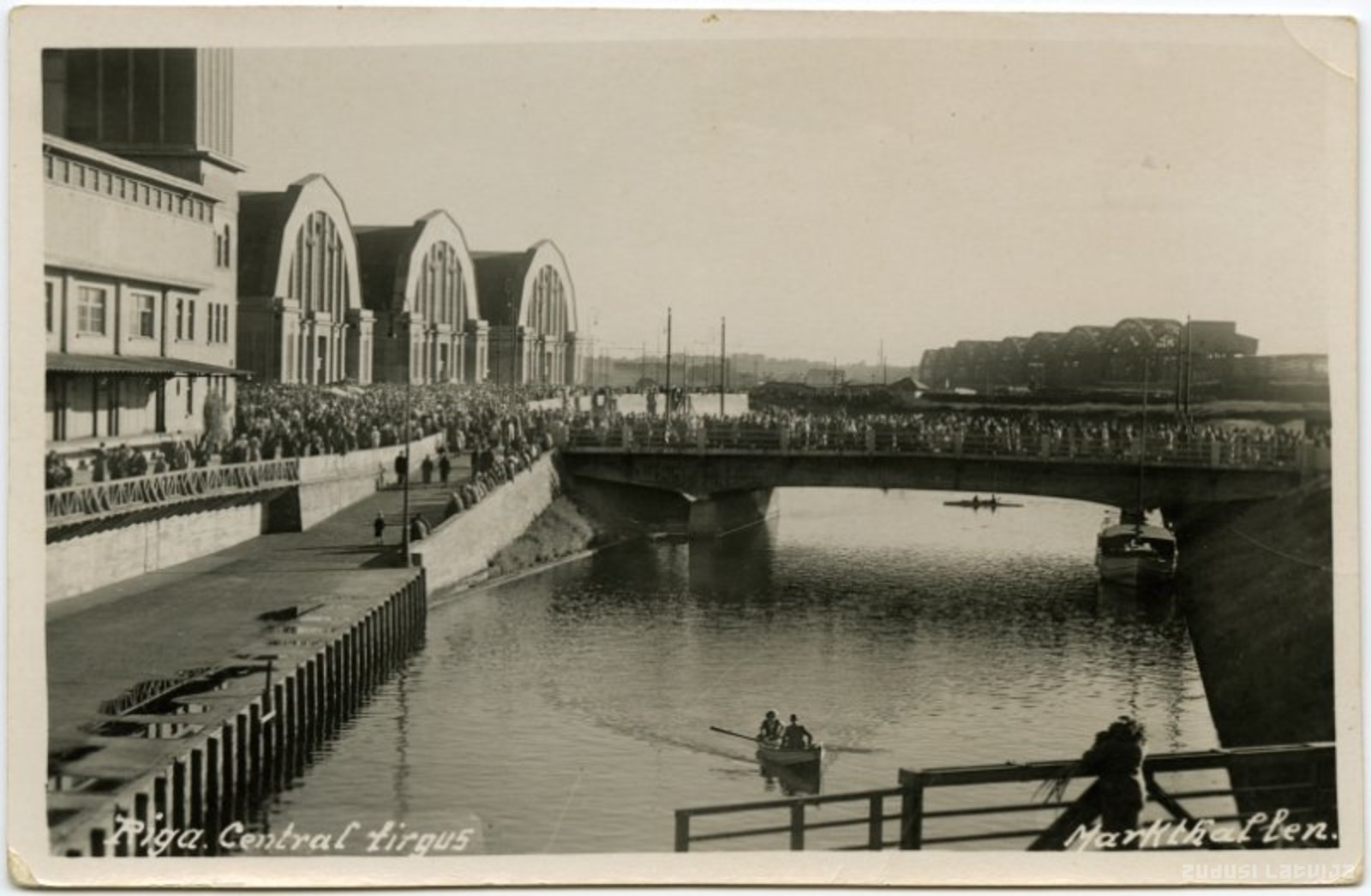 1922. gadā Rīgas pilsētas dome nolēma pārcelt Daugavmalas tirgu uz laukumu starp kanālu un "Sarkanajiem spīķeriem". Izmantojot tirgus korpusu konstrukcijām no vācu okupācijas laika Vaiņodē atstātos cepelīnu angārus, 1924. gadā sāka tirgus paviljonu būvi. Nosaukums “Centrāltirgus” piešķirts 1930. gada 18. septembrī, tirgus atklāts 1930. gada 1. novembrī. Tolaik tas tika uzskatīts par vienu no vismodernākajiem Eiropā. Padomju okupācijas laikā, no 1949. gada, nosaukums “Centrālais kolhozu tirgus”