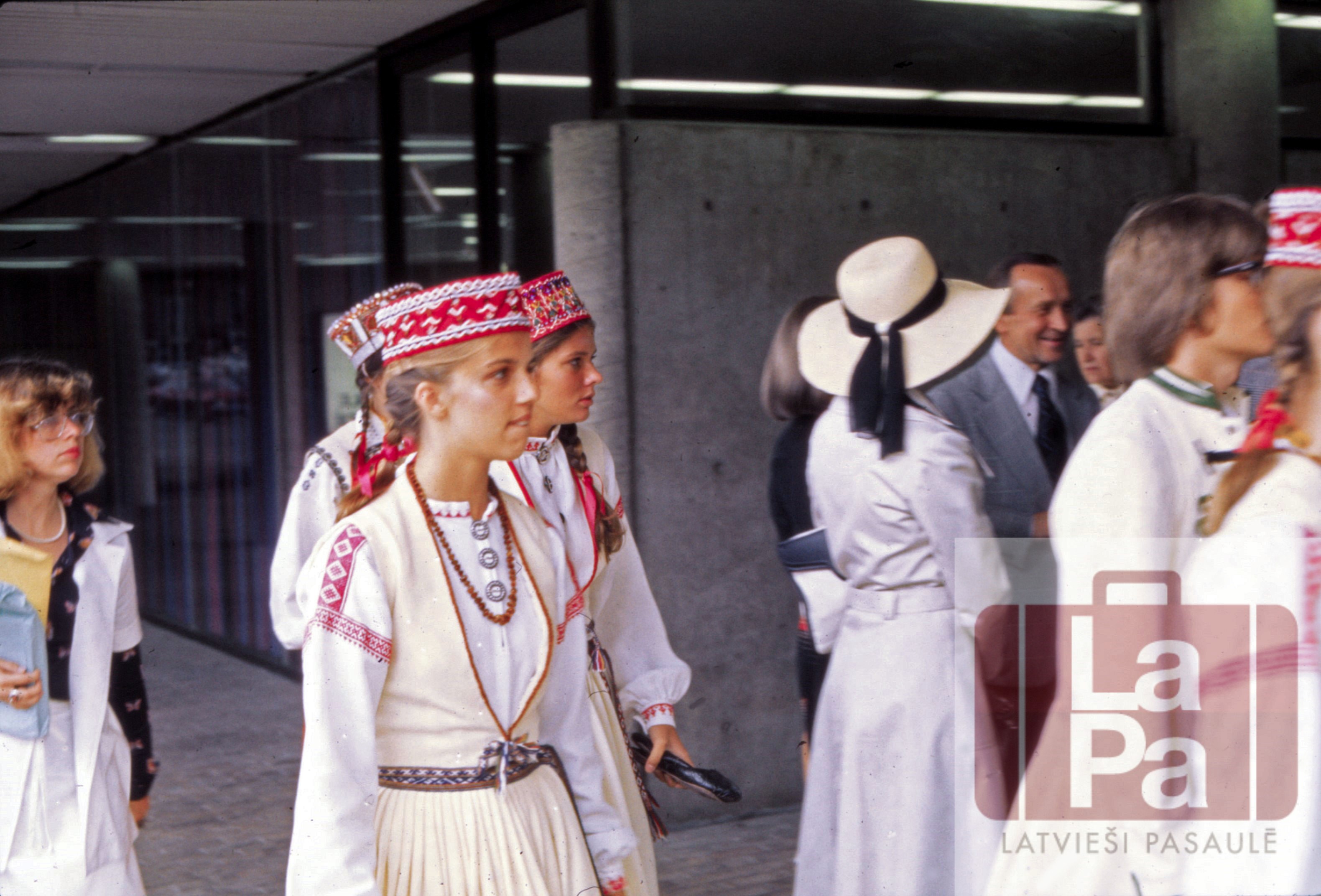 Dejotājas pie Saint Lawrence centra Toronto, Kanādā. Šeit 6. Latviešu Dziesmu svētkos notika Jaundeju skate.