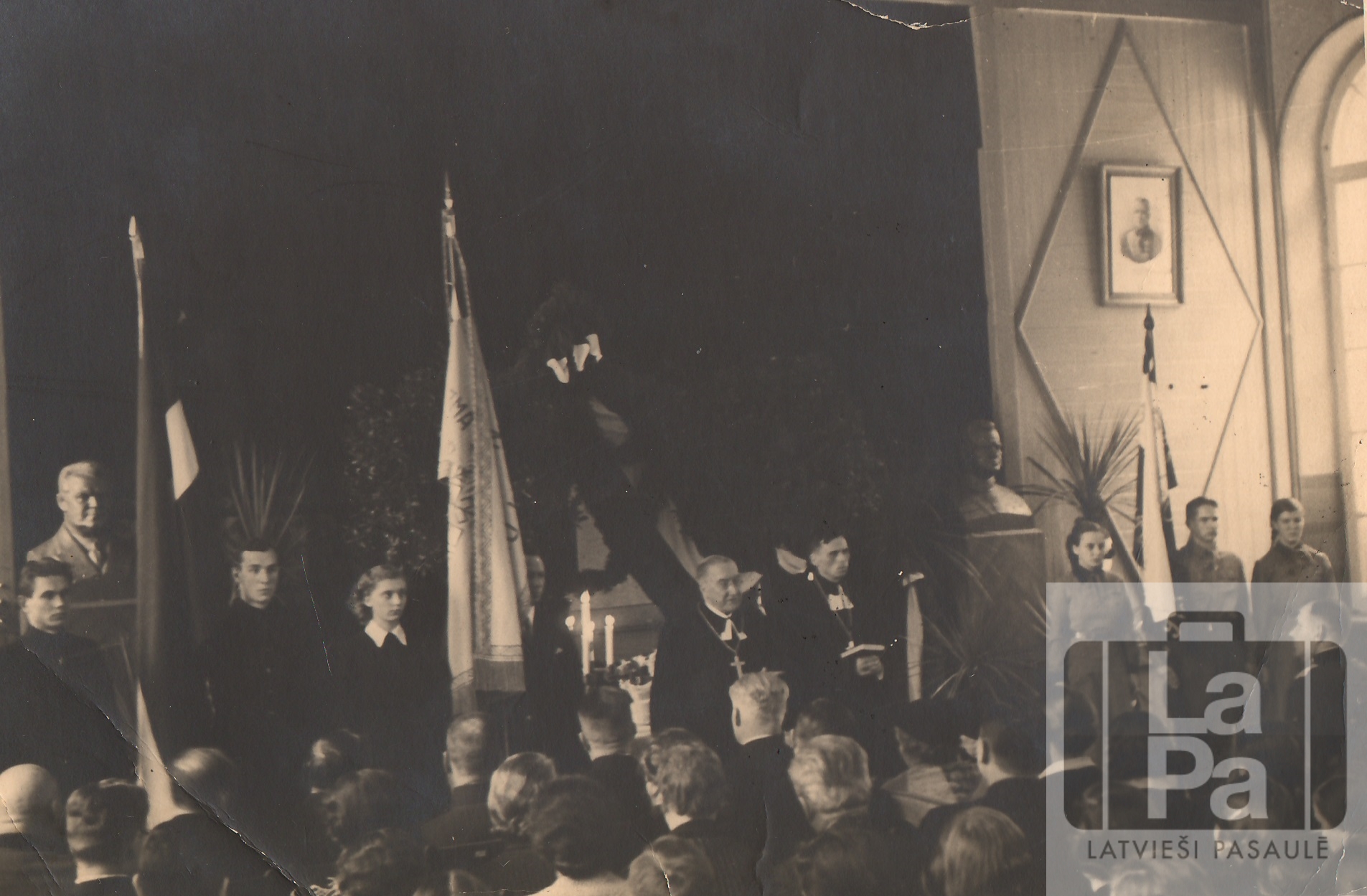 3. no kreisās pie karoga: Margaritas Putce, iesvētot 1. Daugavpils Valsts ģimnāzijas (mūsdienās Daugavpils Valsts ģimnāzija) karogu 1939. gada 17. februārī.