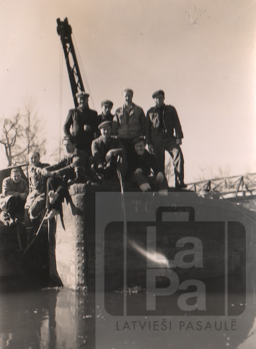 Jānis Daugulis strādā Anglijā pie Temzas upes padziļināšanas kopā ar citiem latviešiem. Fotogrāfijā Jānis Daugulis trešais no kreisās.