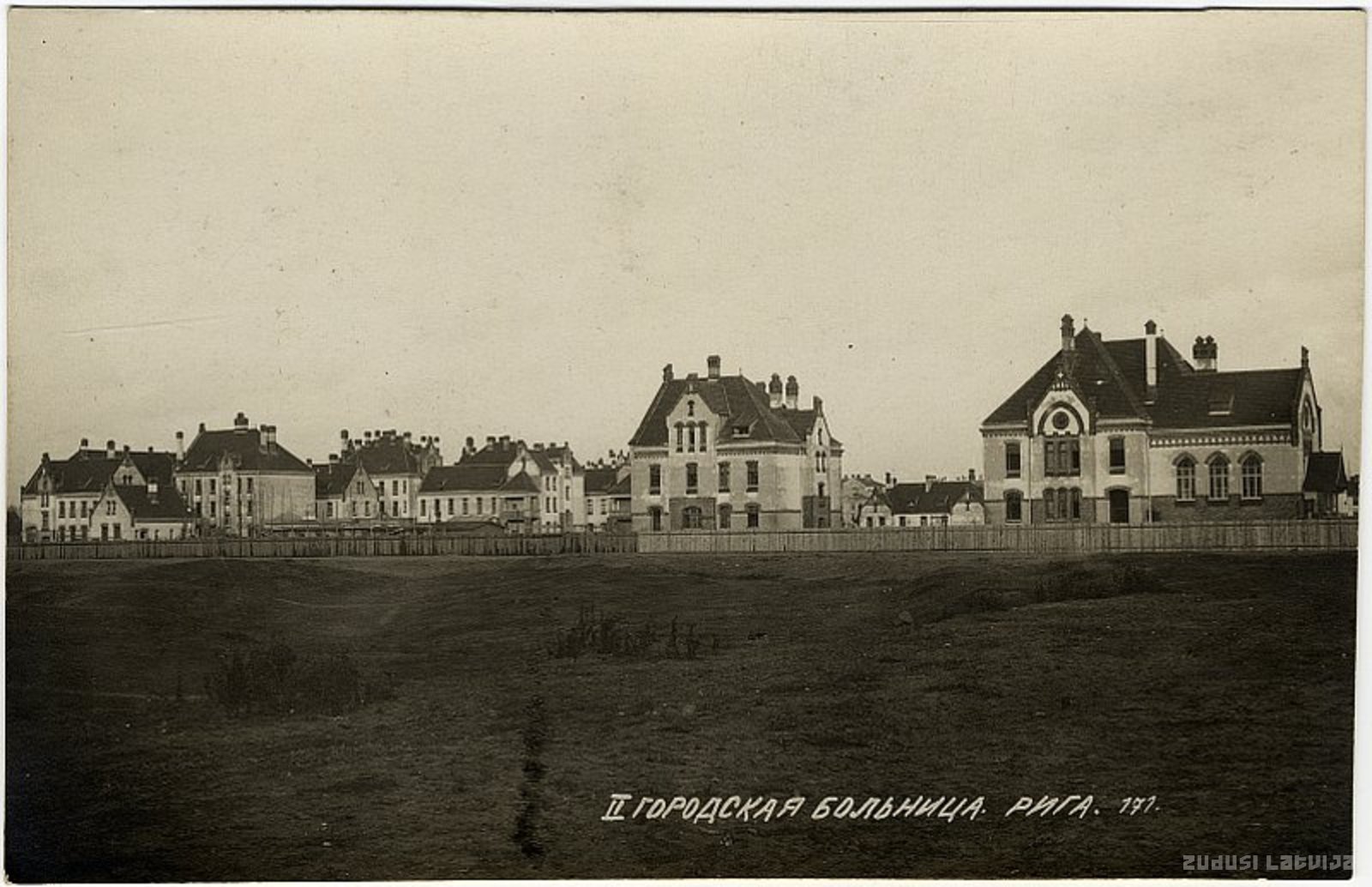 Slimnīcas ēkas celtas 1908.–1912. gadā, projekta autors Rīgas pilsētas galvenais arhitekts R. Šmēlings. 2. pilsētas slimnīca atklāta 1910. gada 10. II (1919.–1928. gadā slimnīca nedarbojās). 30. gados celts jauns sešstāvu korpuss, kas pilnībā pabeigts pēc 2. pasaules kara. 1939. gadā sāka celt dzemdību korpusu, tā būvniecību pārtrauca 2. pasaules karš. 1977. gadā uzcelts kardioloģijas korpuss. 20. gados 2. pilsētas slimnīcas teritorijā atradās bēgļu karantīnas punkts un bēgļu bērnu patversme, tur 20. gados un 30. gadu sākumā izvietojās arī Iekšlietu ministrijas valsts emigrantu nams. 1922.–1938. gadā slimnīcas teritorijā vairākos vienstāva korpusos darbojās Rīgas (valsts) skolotāju institūts, 30. gados tur arī pilsētas bērnunama nodaļa "Māte un bērns" un bērnu sile. 1939. gadā pēc prof. P. Stradiņa ierosmes dibināta žēlsirdīgo māsu skola, sākotnēji kā Rīgas 2. slimnīcas žēlsirdīgo māsu un pirmās šķiras mācītu sanitāru skola, kopš 50. gadu vidus tur 2. medicīnas skola. Kopš 1958. gada darbojas P. Stradiņa republikāniskā klīniskā slimnīca, mūsdienās - Paula Stradiņa klīniskā universitātes slimnīca