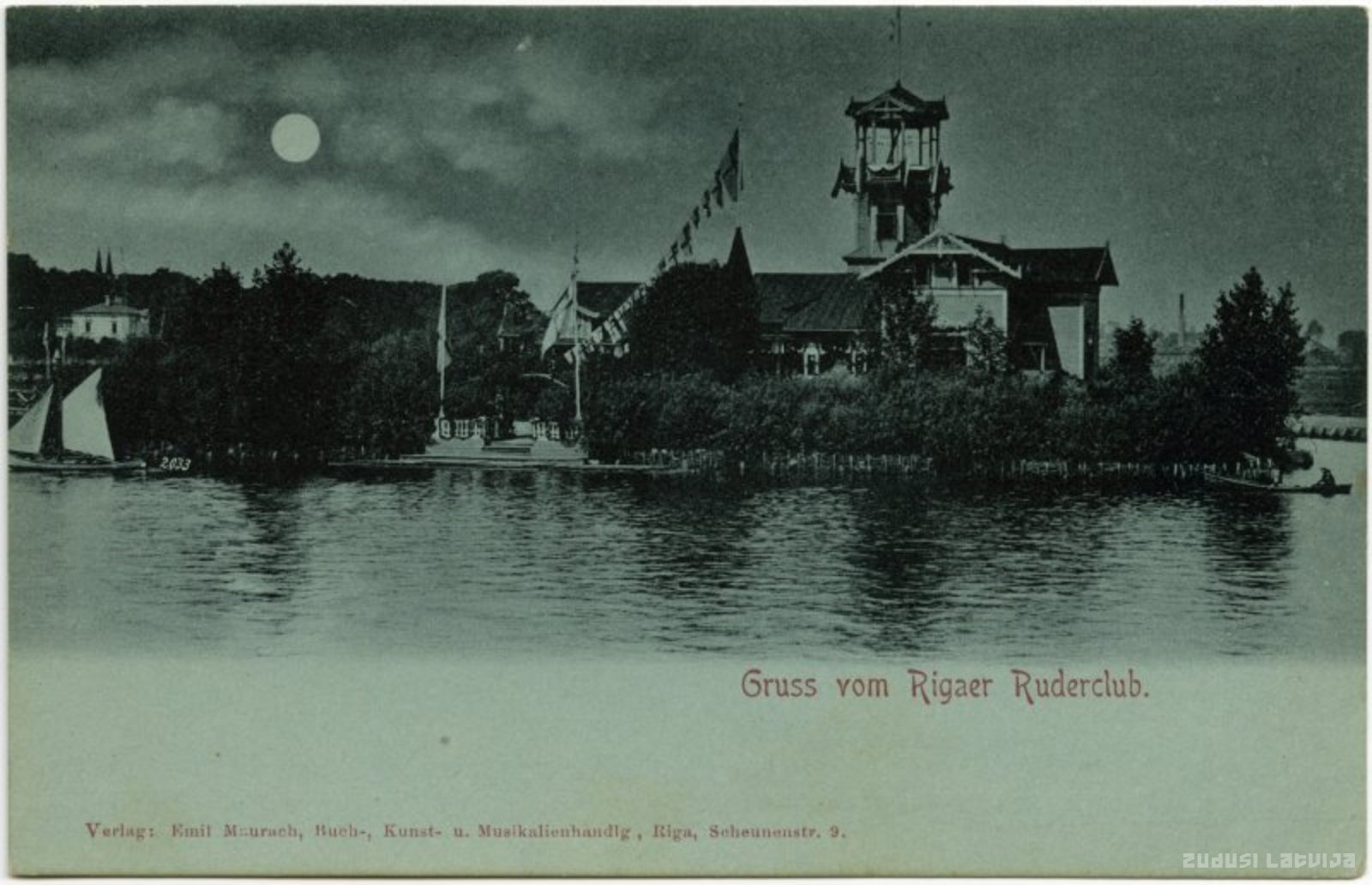 Rīgas airētāju kluba ēka celta 19. gadsimta 70. gadu beigās uz pāļiem nostiprinātas nelielas saliņas Āgenskalna līcī, 1889. un 1894. gadā paplašināta un pārbūvēta pēc arhitekta J. fon Hāgena projekta. Ēka gājusi bojā ugunsgrēkā 1904. gadā. Jauno kluba ēku uzcēla Balasta dambī 12. Rīgas airētāju klubs dibināts 1872. gadā, tas darbojās līdz vācbaltu aizceļošanai 1939. gadā (vairums kluba biedru bija vācbalti), kad kluba bāzi un inventāru pārņēma sporta biedrība "Universitātes sports"