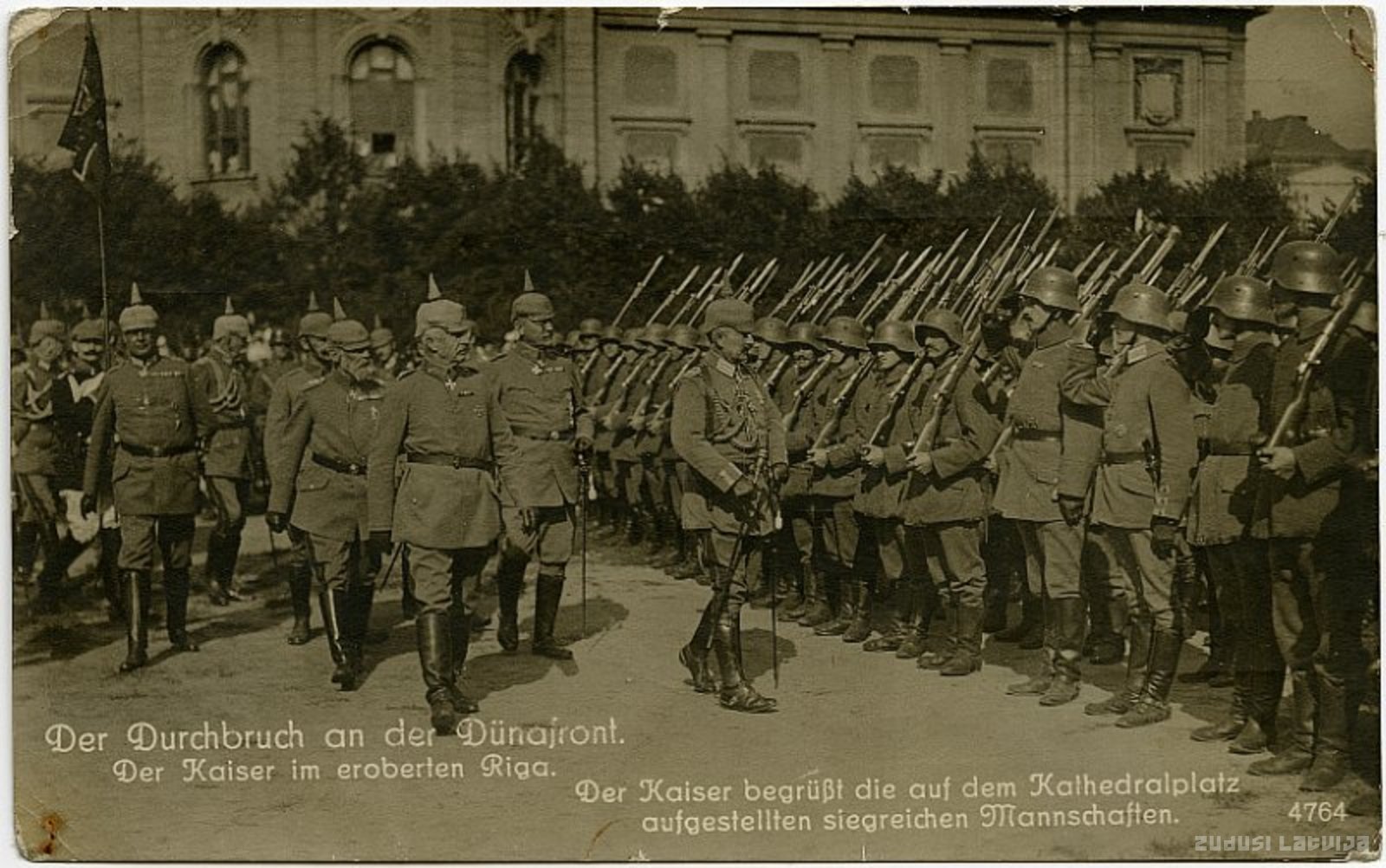 Vācijas ķeizars Vilhelms II un Bavārijas princis Leopolds, tobrīd Austrumu kopējā vācu karaspēka virspavēlnieks, ieradās Rīgā 1917. gada 7. septembrī (pēc jaunā stila). Esplanādē notika vācu armijas parāde, ko pieņēma Vilhelms II