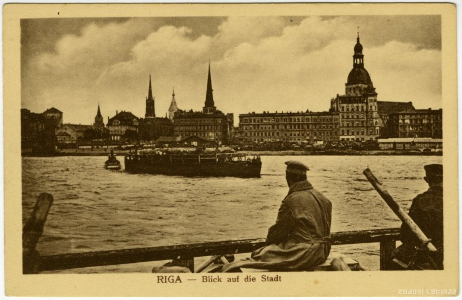 Vecrīgas panorāma. Vācu karavīri