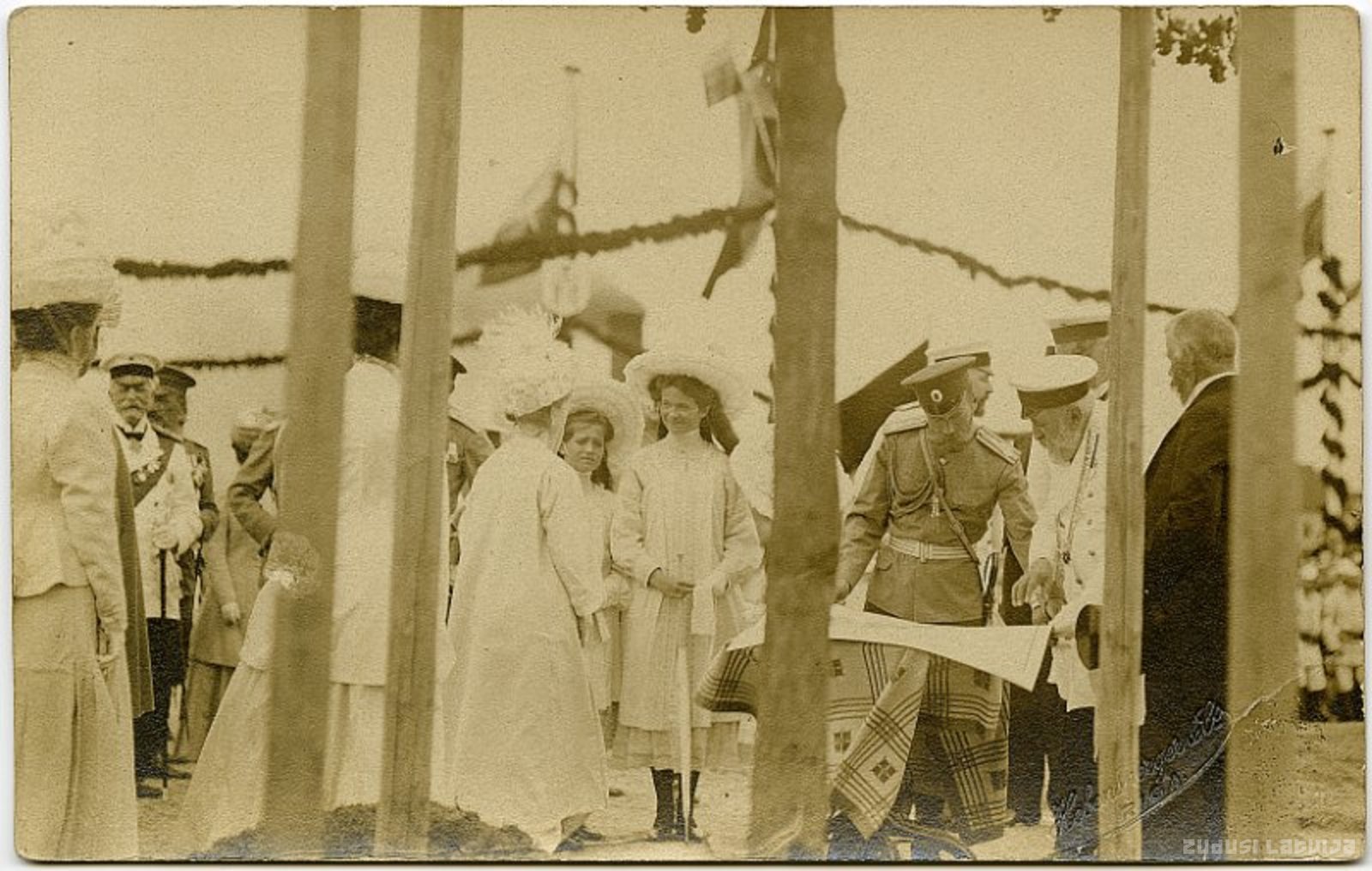 Krievijas cars Nikolajs II un Rīgas pilsētas galva Džordžs Ārmitsteds (baltā uniformā)