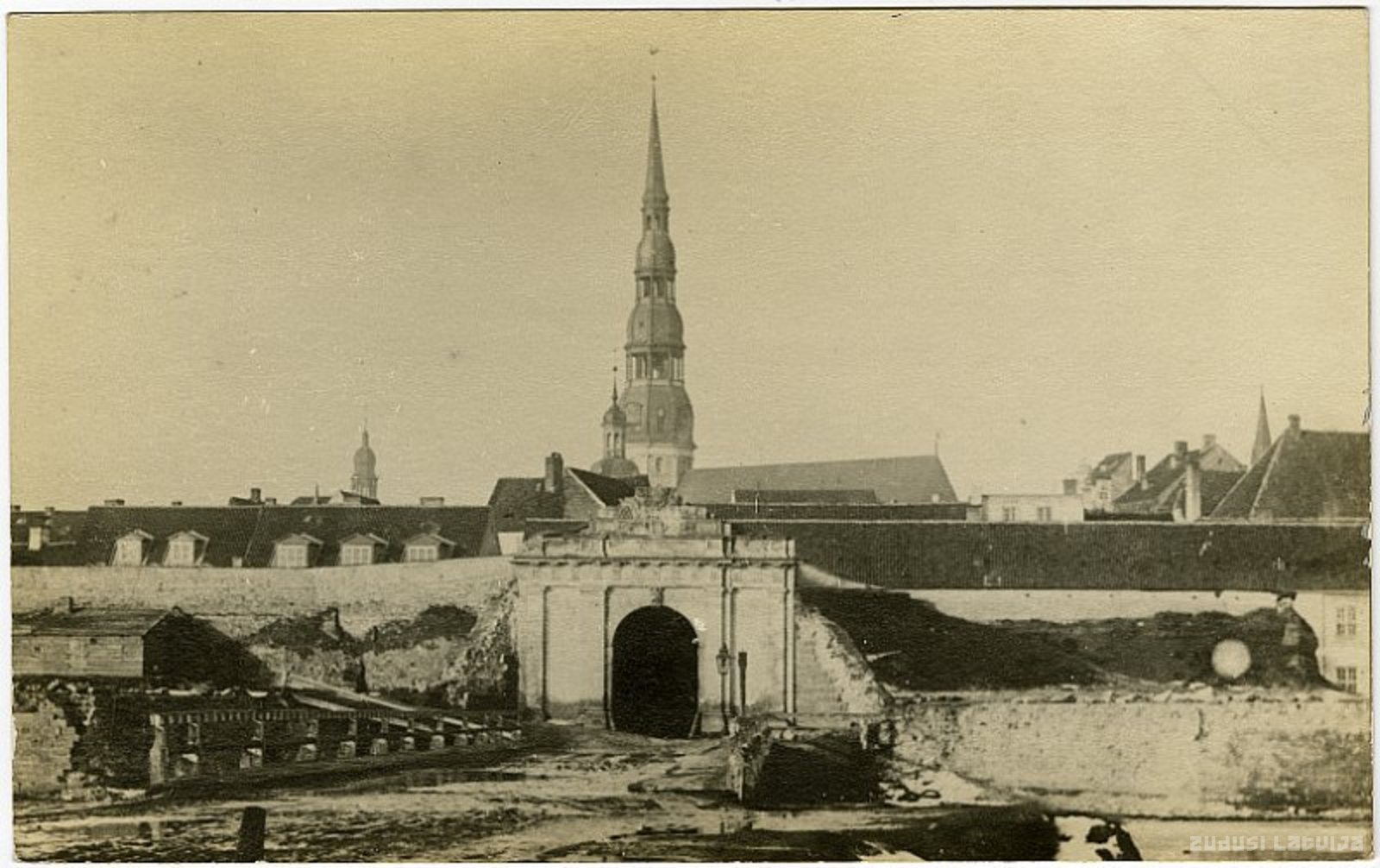 Atklātne ar 1863. gada fotogrāfijas reprodukciju. Kārļa vārti pilsētas nocietinājumu valnī, nosaukti Zviedrijas karaļa Kārļa XI vārdā, atradās netālu no Kārļa (tagadējās 13. janvāra) ielas. Kārļa vārtus nojauca 19. gadsimta 60. gados, likvidējot pilsētas nocietinājumu vaļņus. Kārļa vārti devuši nosaukumu virknei apkārtnes kādreizējo toponīmu: Kārļa iela, Kārļa ravelīns. Kārļa tilts, Kārļa baseins, Kārļa slūžas, Kārļa siena tirgus. Līdzās Kārļa vārtiem, nocietinājumu priekšlaukumā, 18. gadsimtā atradās uniātu Nikolaja baznīca, nojaukta 1781. gadā