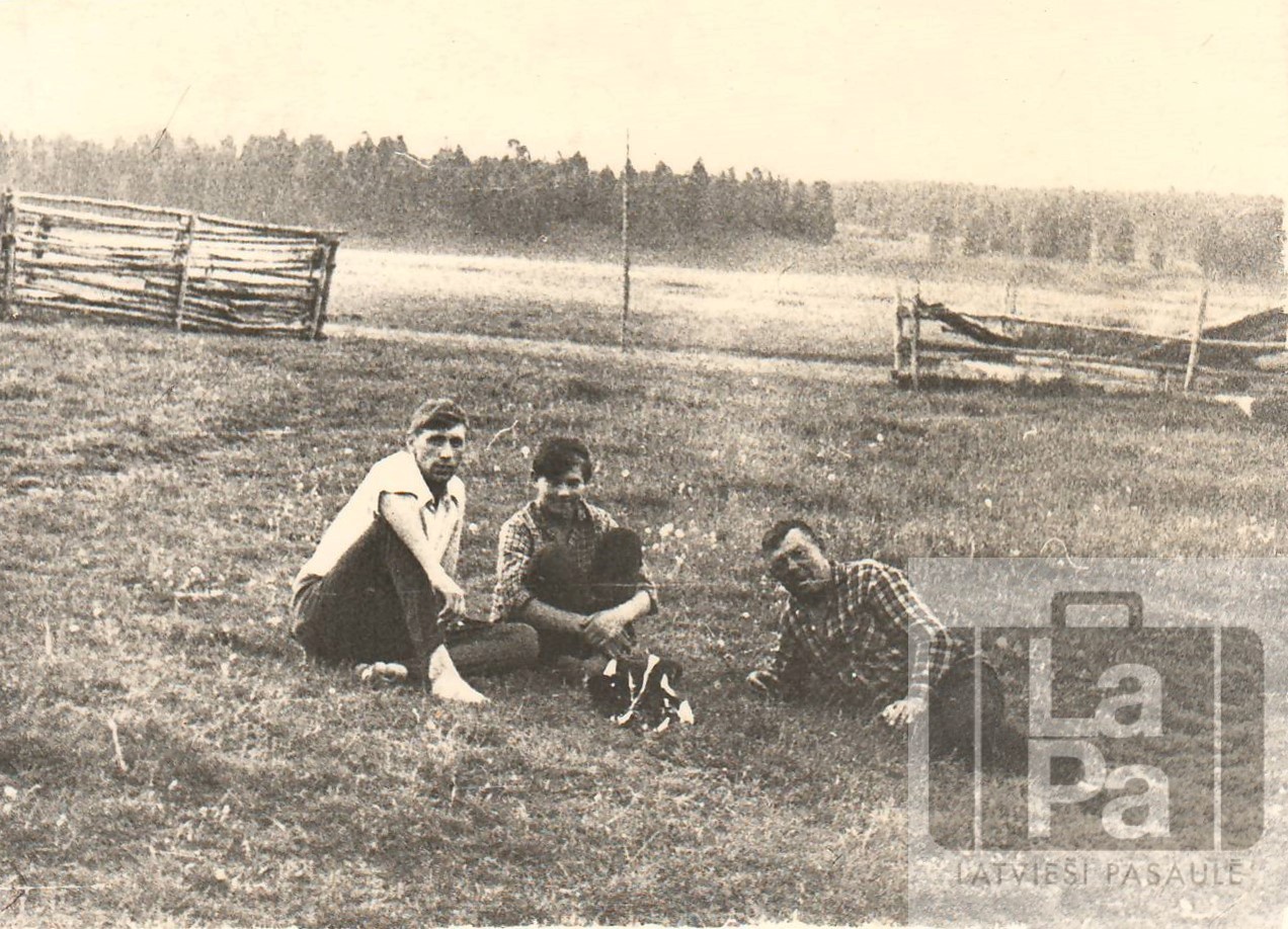 No kreisās: Eduards Bērziņš, Sergejs Egle, nezināms. Suhonoja, Krasnojarskas apgabals. 20. gadsimta 70. gadi.