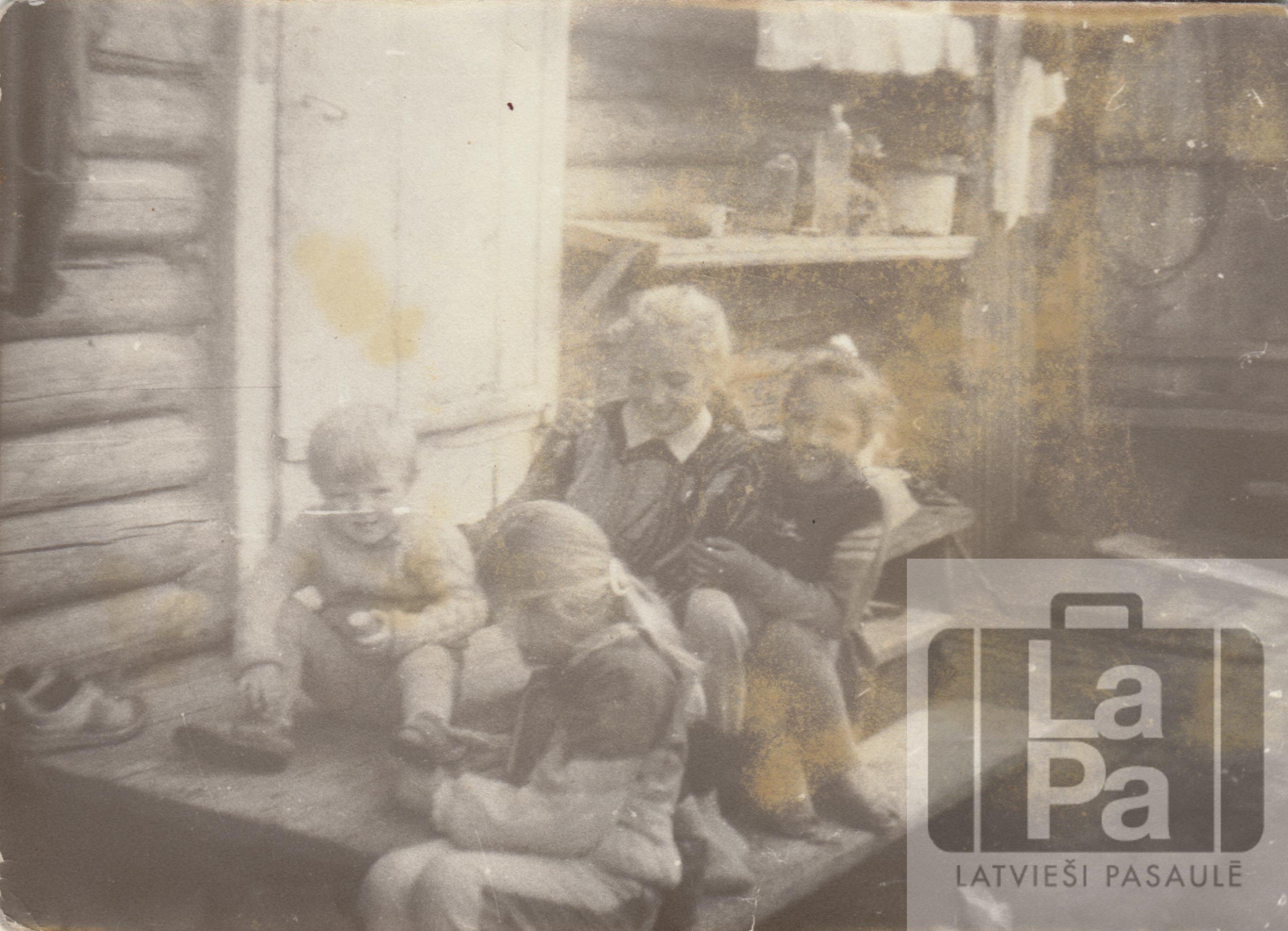 Bērni spēlējas mājas pagalmā. Timofejevka, 20. gadsimta 70. gadi.