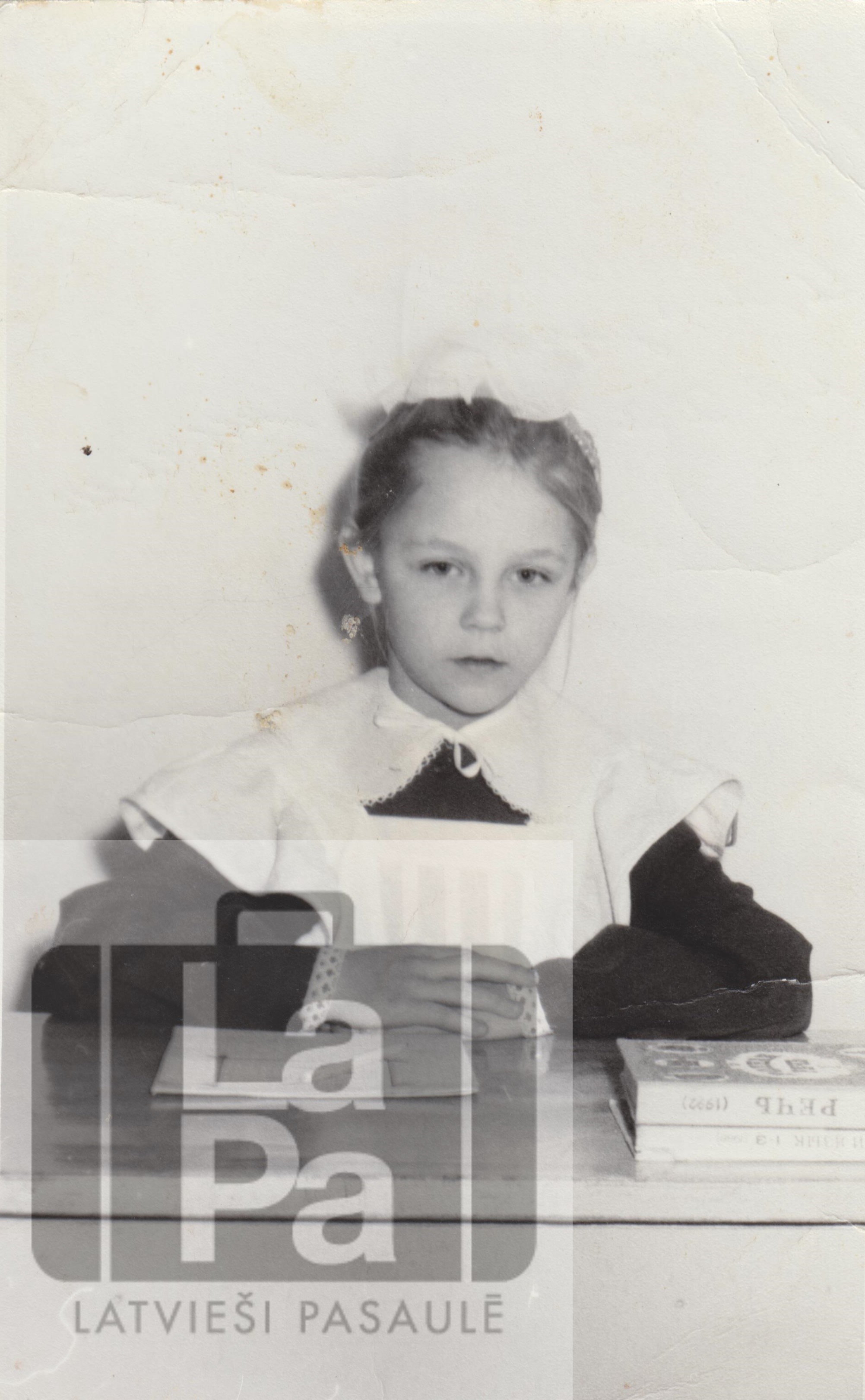 Zoja Ivule skolas formā Timofejevkas skolā 1993. gadā. Aizmugurē teksts krievu valodā: Ivuļ Zoja. 8 gadi. Es mācos pirmajā klasē. Es mācos labi, bet Serjoga – nē. Ha, ha, ha. Serjoga – muļķis, es – gudriniece. Ha, ha, ha.
