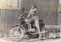 Ņina Kravale ar motociklu pie mājas. Timofejevka, 20. gadsimta 70. gadu beigas – 80. gadu sākums.