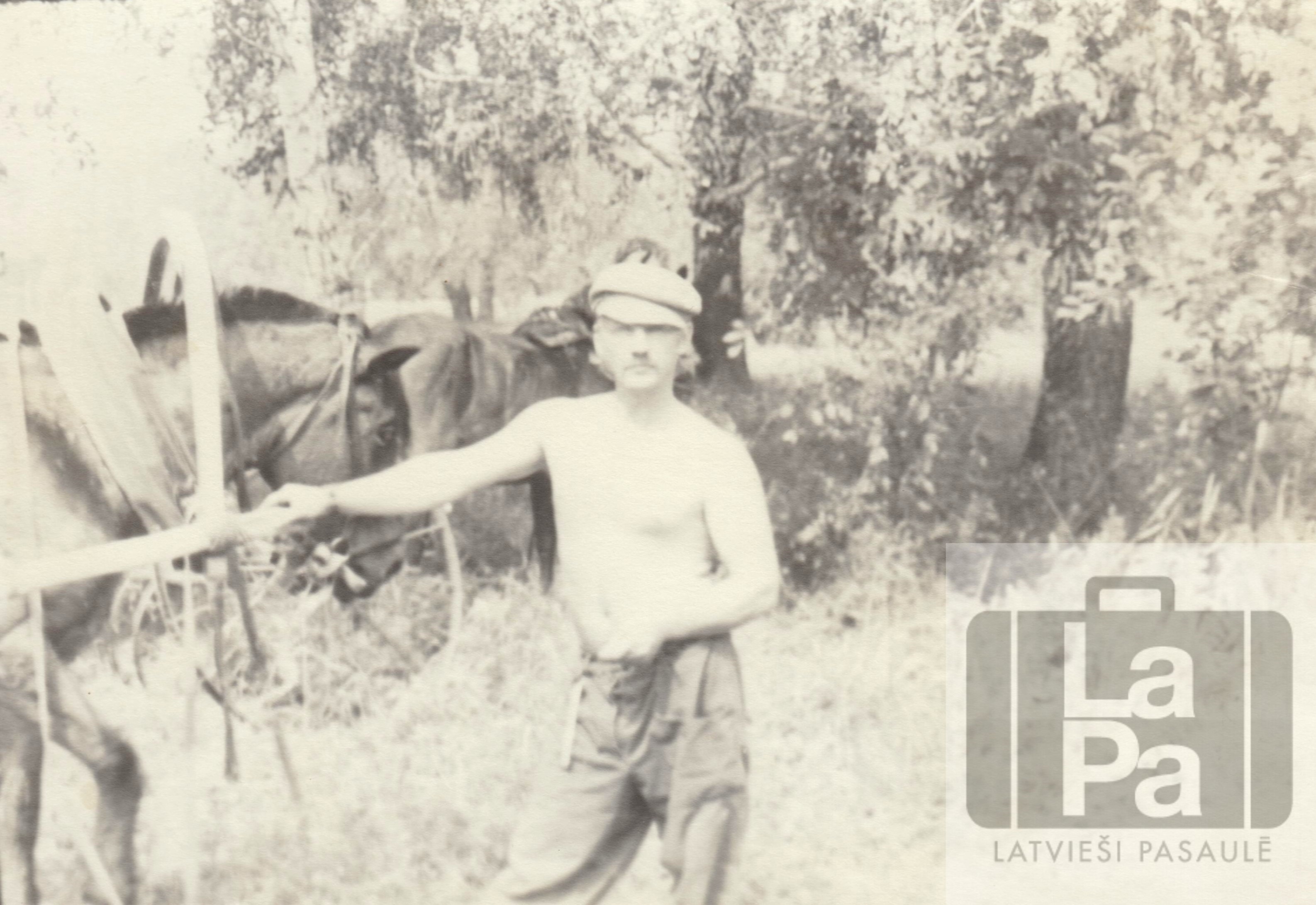 Stepans Ivulis ar zirgiem. Timofejevka, 20. gadsimta 80. gadi.