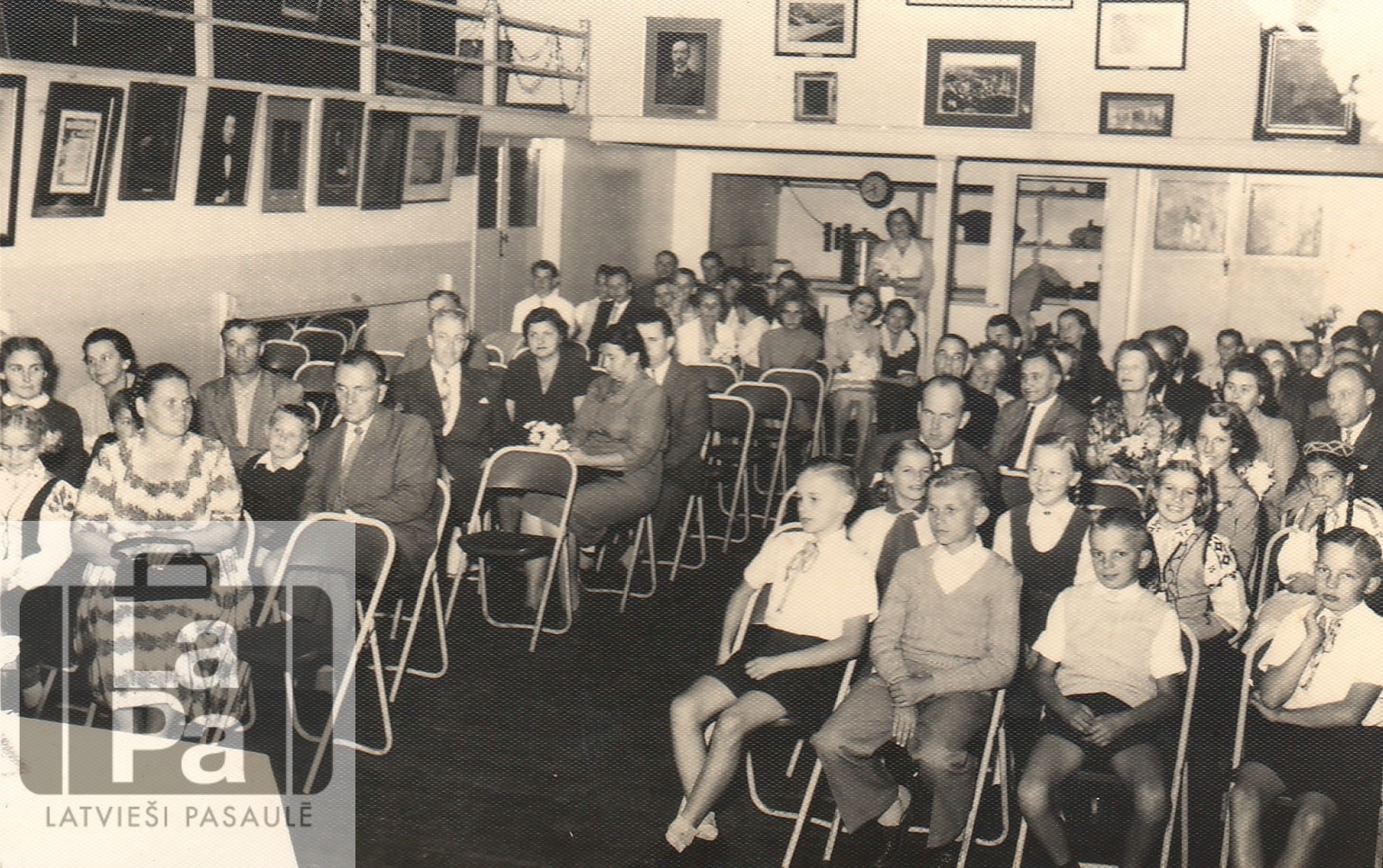 Latviešu sarīkojums Brisbenas Ģeogrāfijas biedrības zālē 20. gadsimta 50. gadu vidū. Klausītāju vidū redzami Lilija Kūla, Vīksnes kundze, bērni Arvis un Maris Bielas, Ināra Švalbe, Ērika Lindemane, Aina Skadiņa, Dagnija Vaivariņa, Baiba Bite.