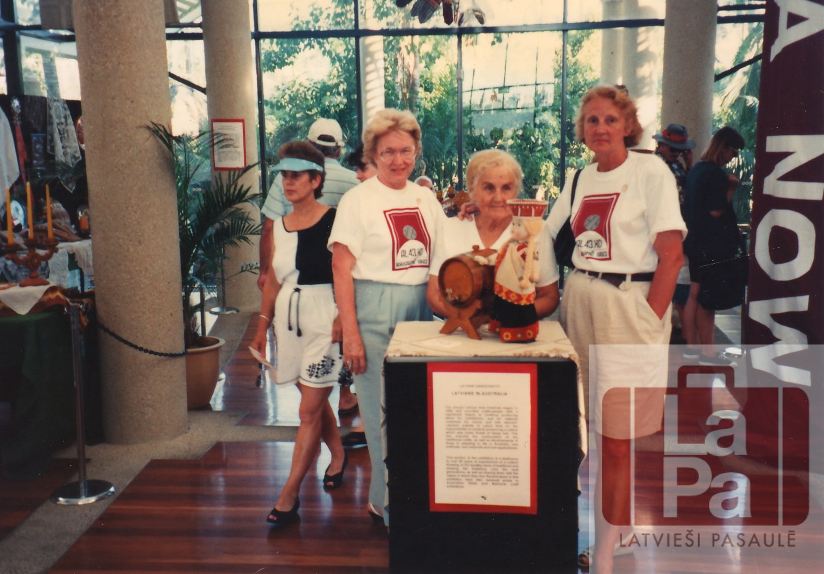 Austrālijas latviešu 43. kultūras dienas Brisbenā 1993. gadā. Mākslas un daiļamatniecības izstāde pilsētas centra "South Bank" telpās. No kreisās: Brigita Liepiņa, Lilija Rudzīte, Inta Krūmiņa.
