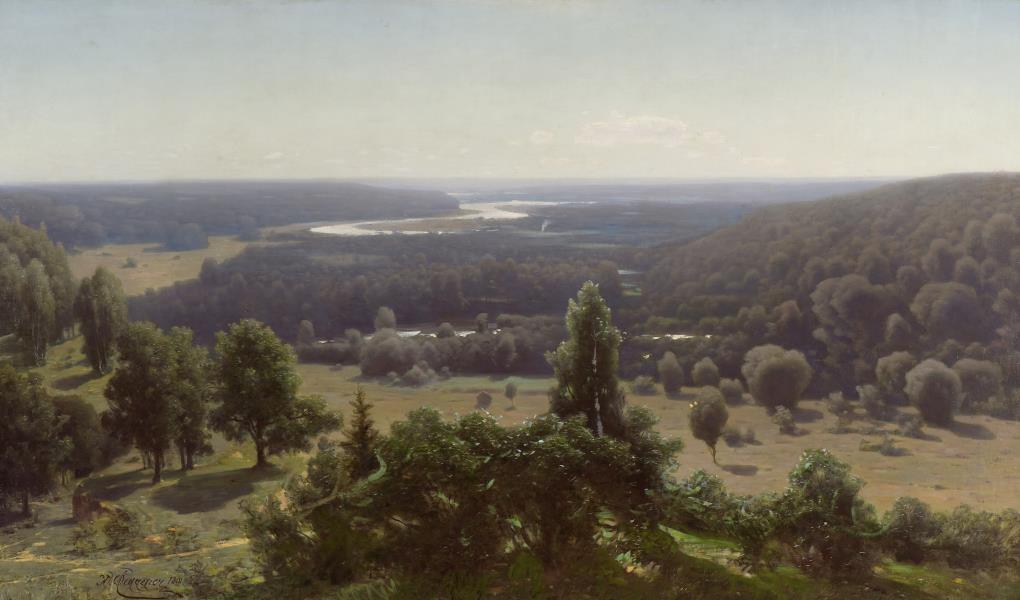In this panoramic landscape characteristic of 19th century painting, two seemingly contradictory principles of been combined – the informative and the emotional. In this expansive story about the winding Gauja river and the most characteristic species of trees found there, the artist has not become dryly practical for a moment or pettily garrulous. The landscapist has also refrained from focussing attention to concrete objects in the fore or middle ground, choosing instead to draw the viewer’s gaze deeper into the painting, over the frail stream of smoke, which is the only evidence of human presence. The purposeful selection of the artistic elements serves to convey the painting’s emotional content creating the notion of a harmonious environment, of nature friendly and commensurate with man, and revealing the genuine and deep, while at the same time controlled experience of the artist.