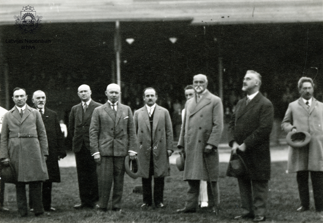 Dzejnieks, dramaturgs Rainis ar sabiedrisko darbinieku grupu. 1920. gadi.